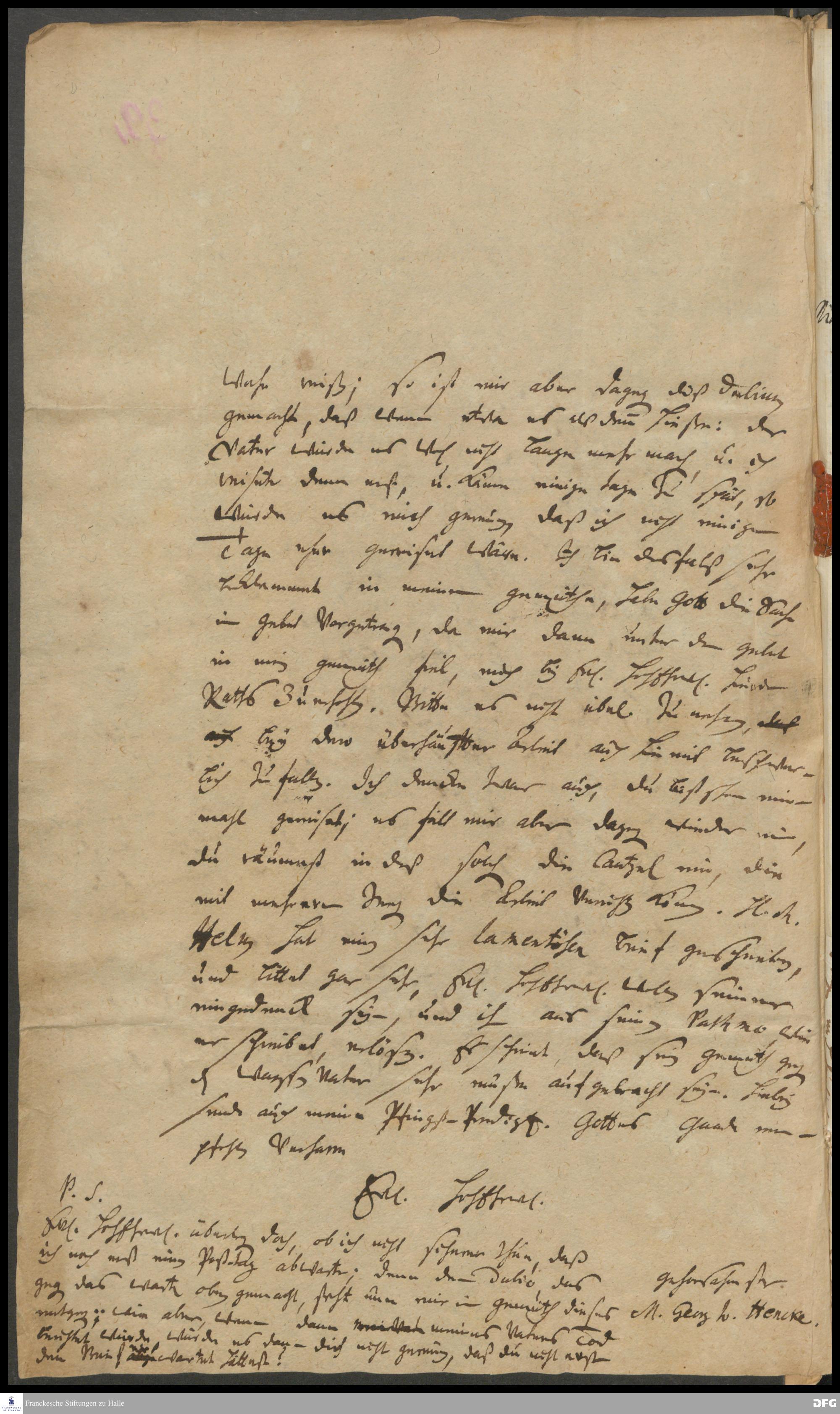 Brief von Georg Johann Hencke an August Hermann Francke.
