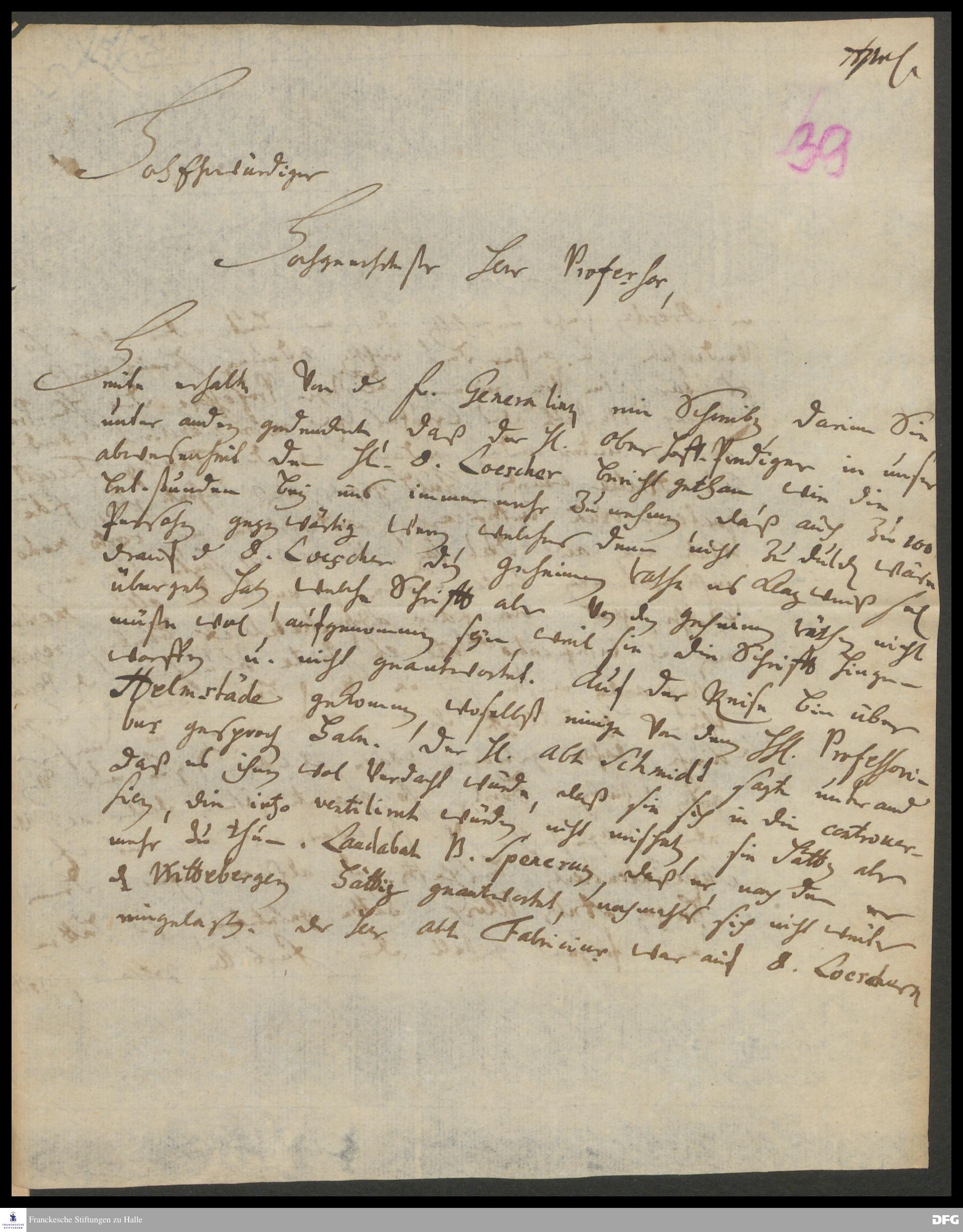Brief von Georg Johann Hencke an August Hermann Francke.