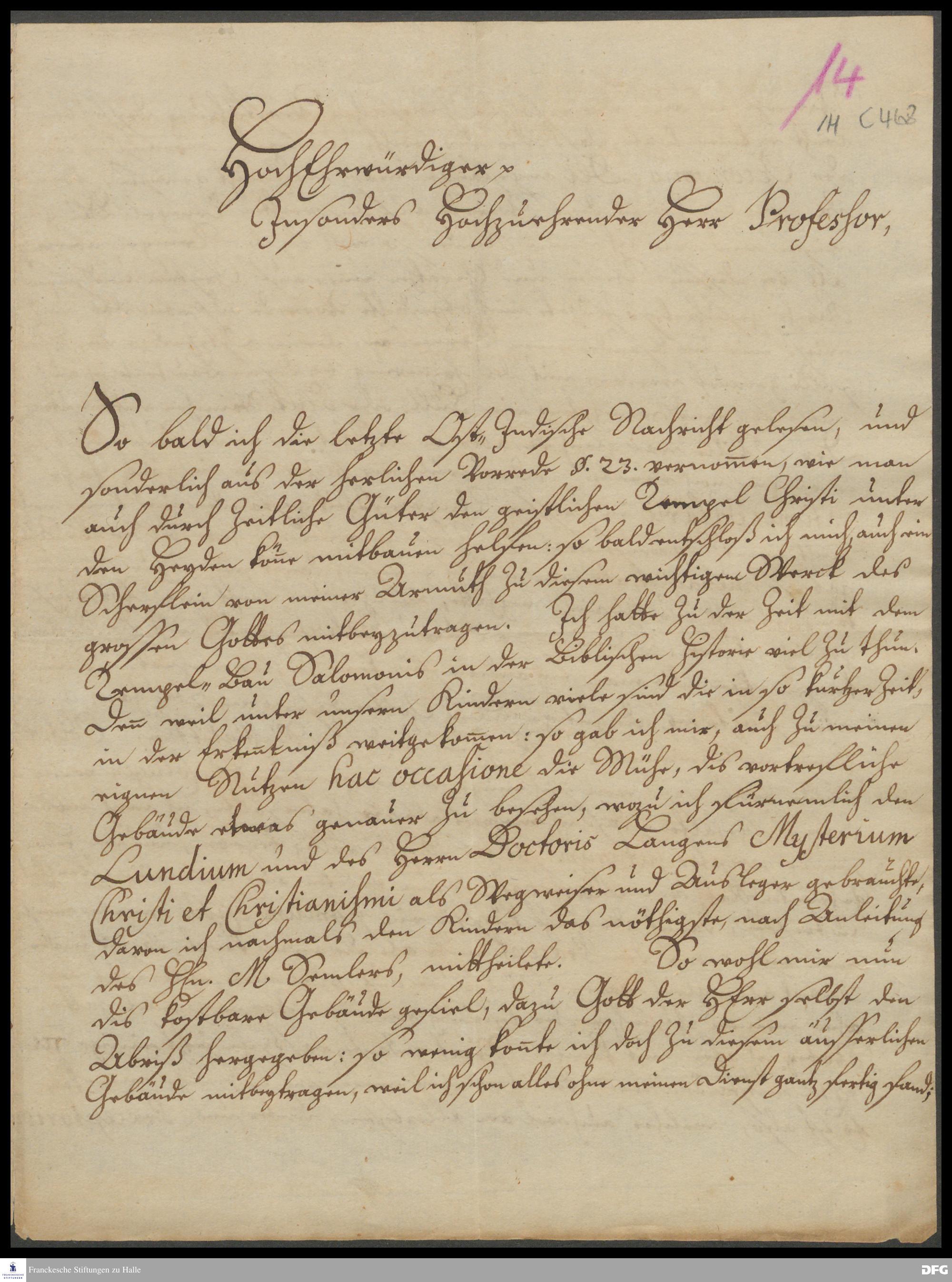 Brief von Joachim Wäger an August Hermann Francke.