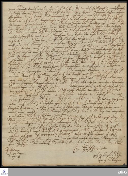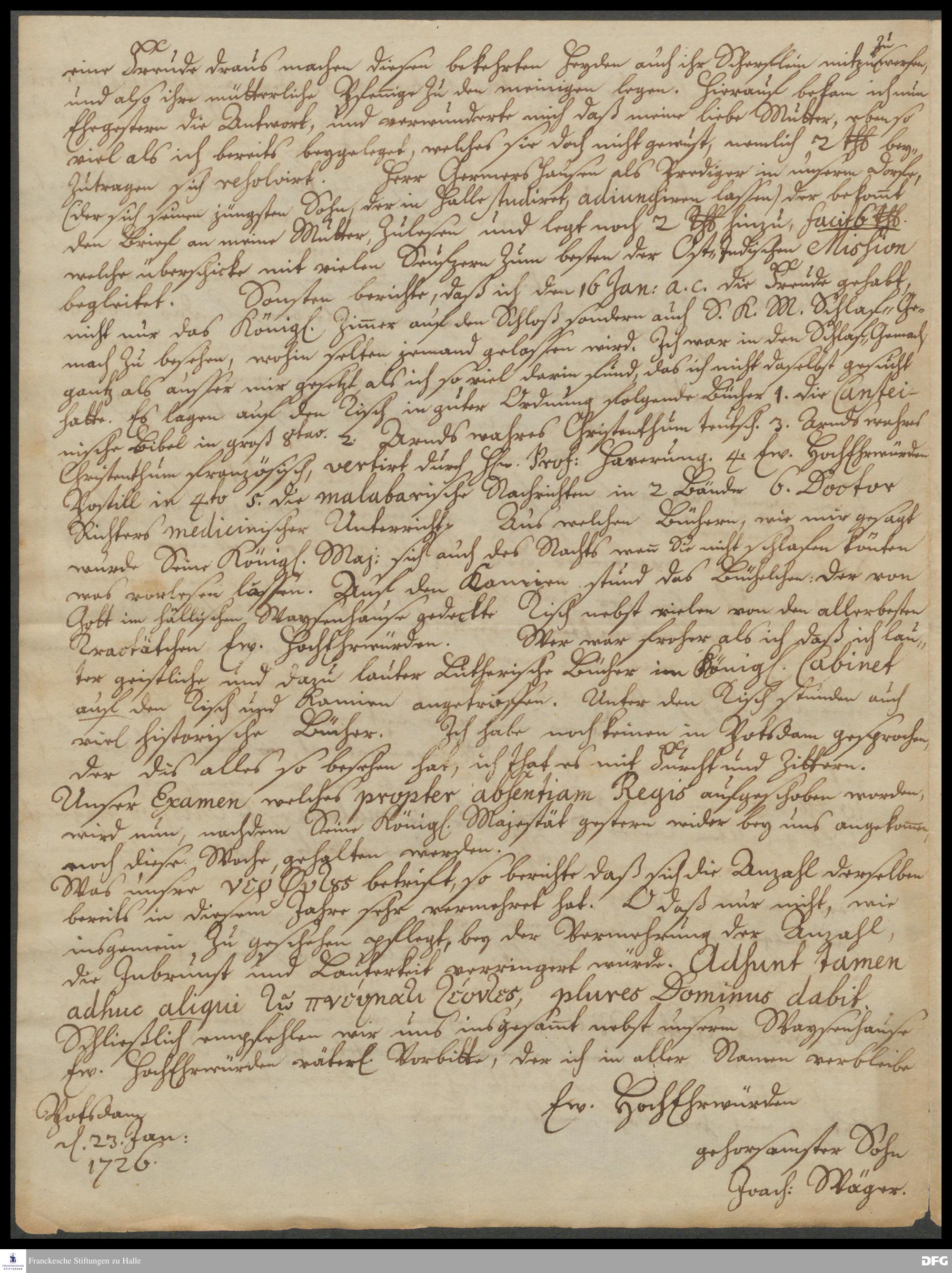 Brief von Joachim Wäger an August Hermann Francke.