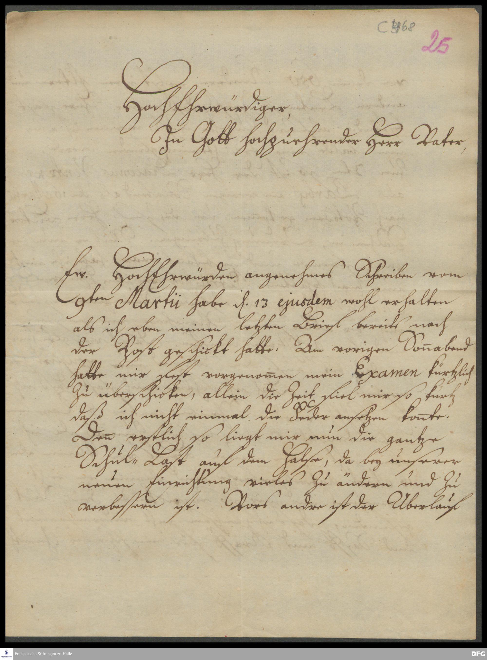 Brief von Joachim Wäger an August Hermann Francke.