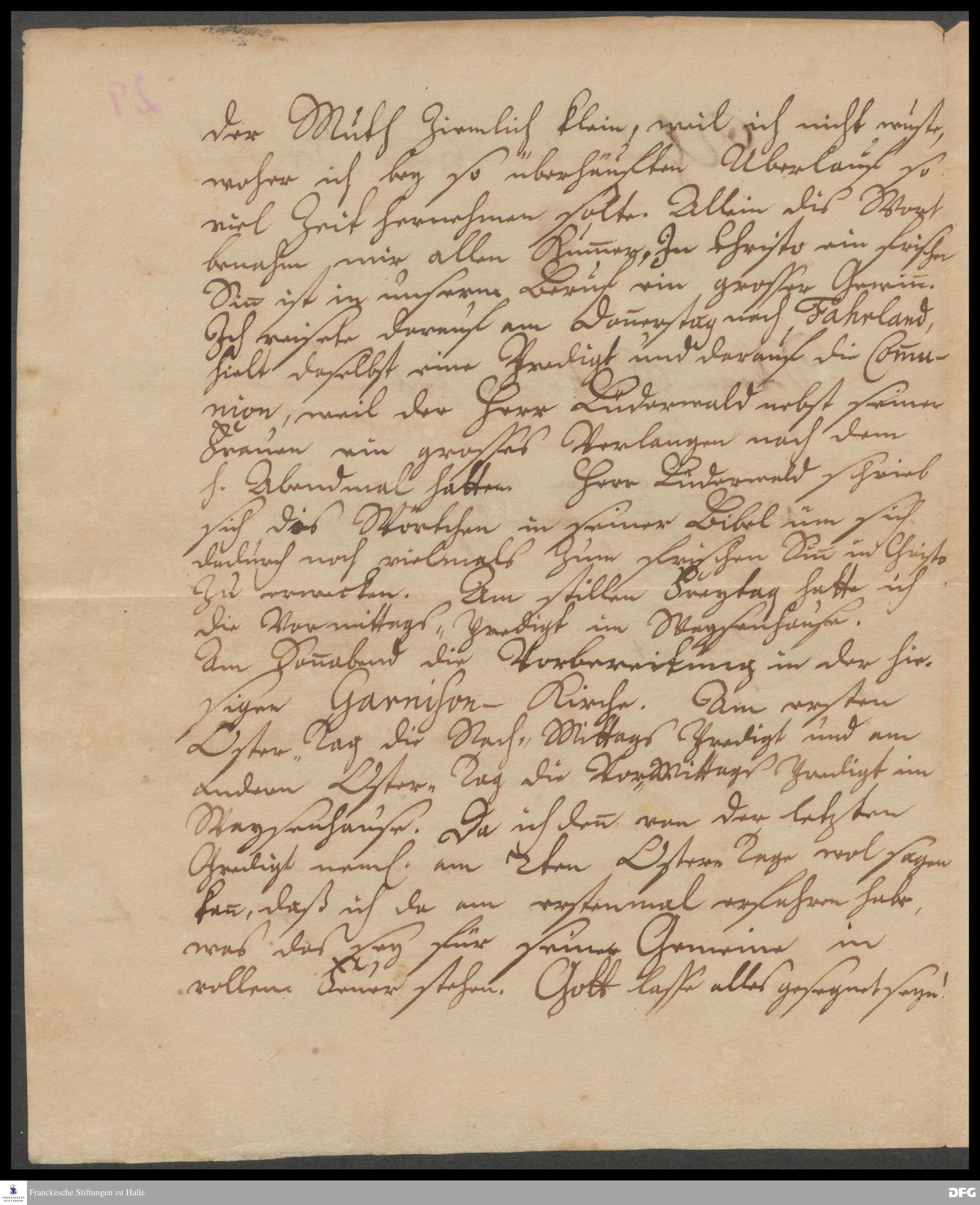 Brief von Joachim Wäger an August Hermann Francke.