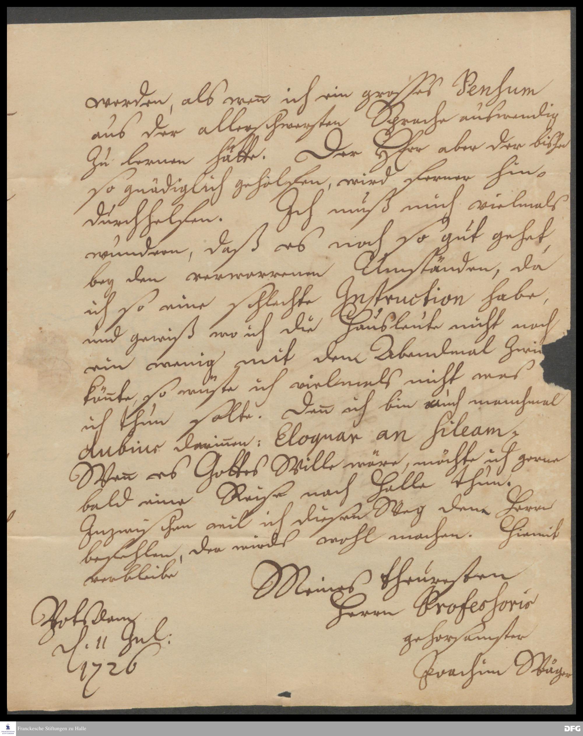 Brief von Joachim Wäger an August Hermann Francke.