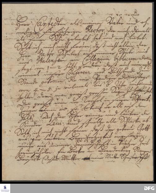 Brief von Joachim Wäger an August Hermann Francke.