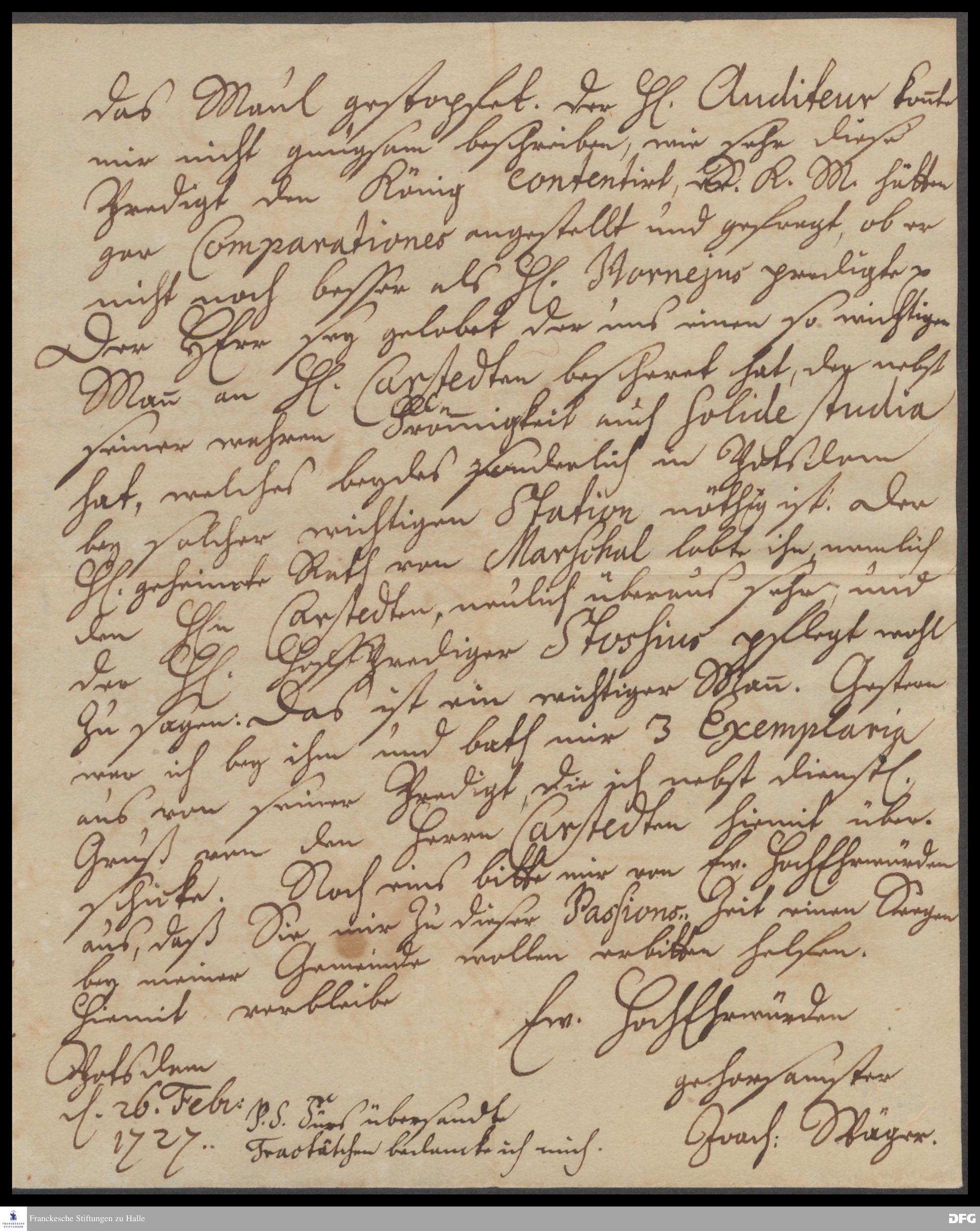 Brief von Joachim Wäger an August Hermann Francke.