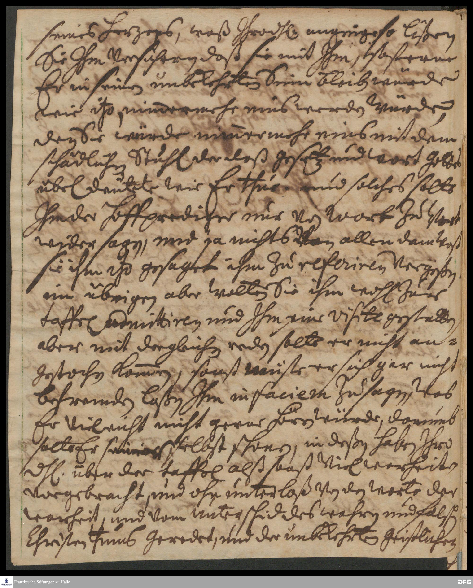 Fragment eines Briefes von Johann Eberhard von Exter an August Hermann Francke.
