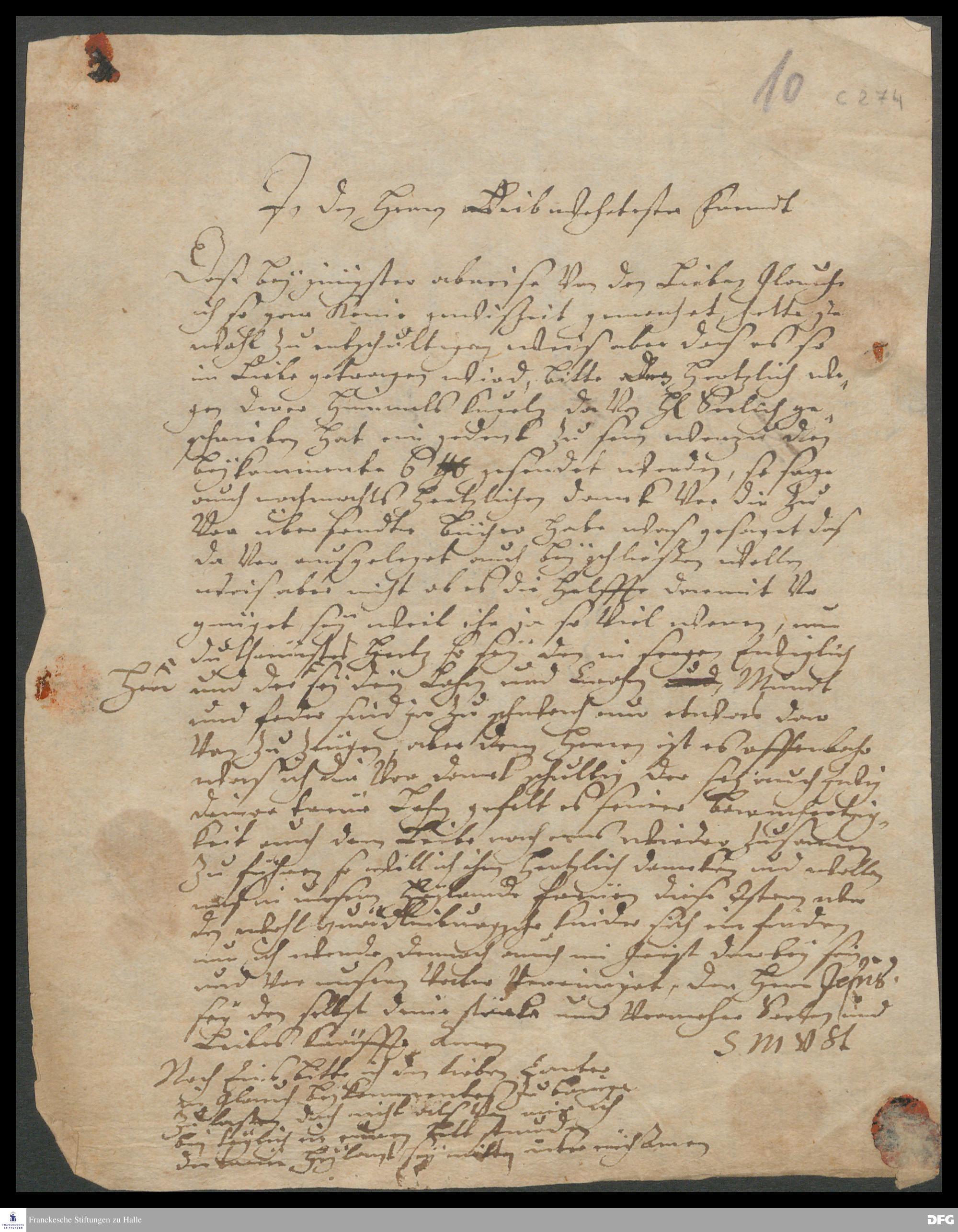 Brief von Sophia Maria v. Stammer an August Hermann Francke.
