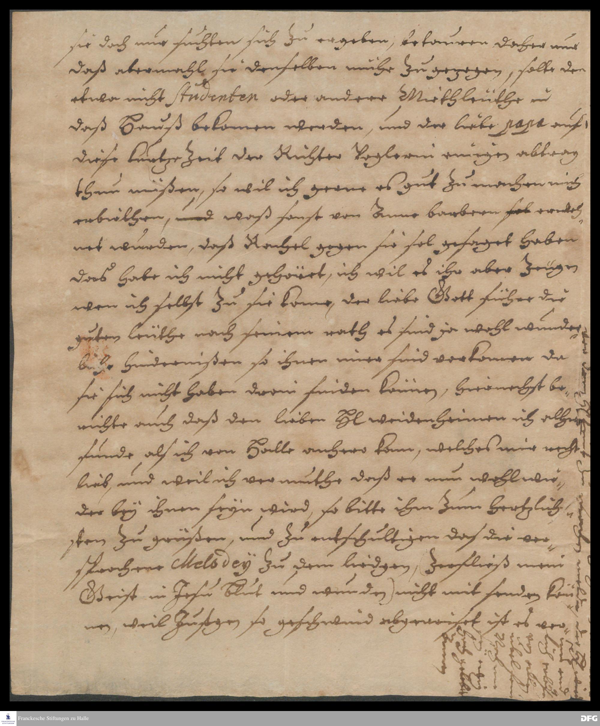 Brief von Sophia Maria v. Stammer an August Hermann Francke.