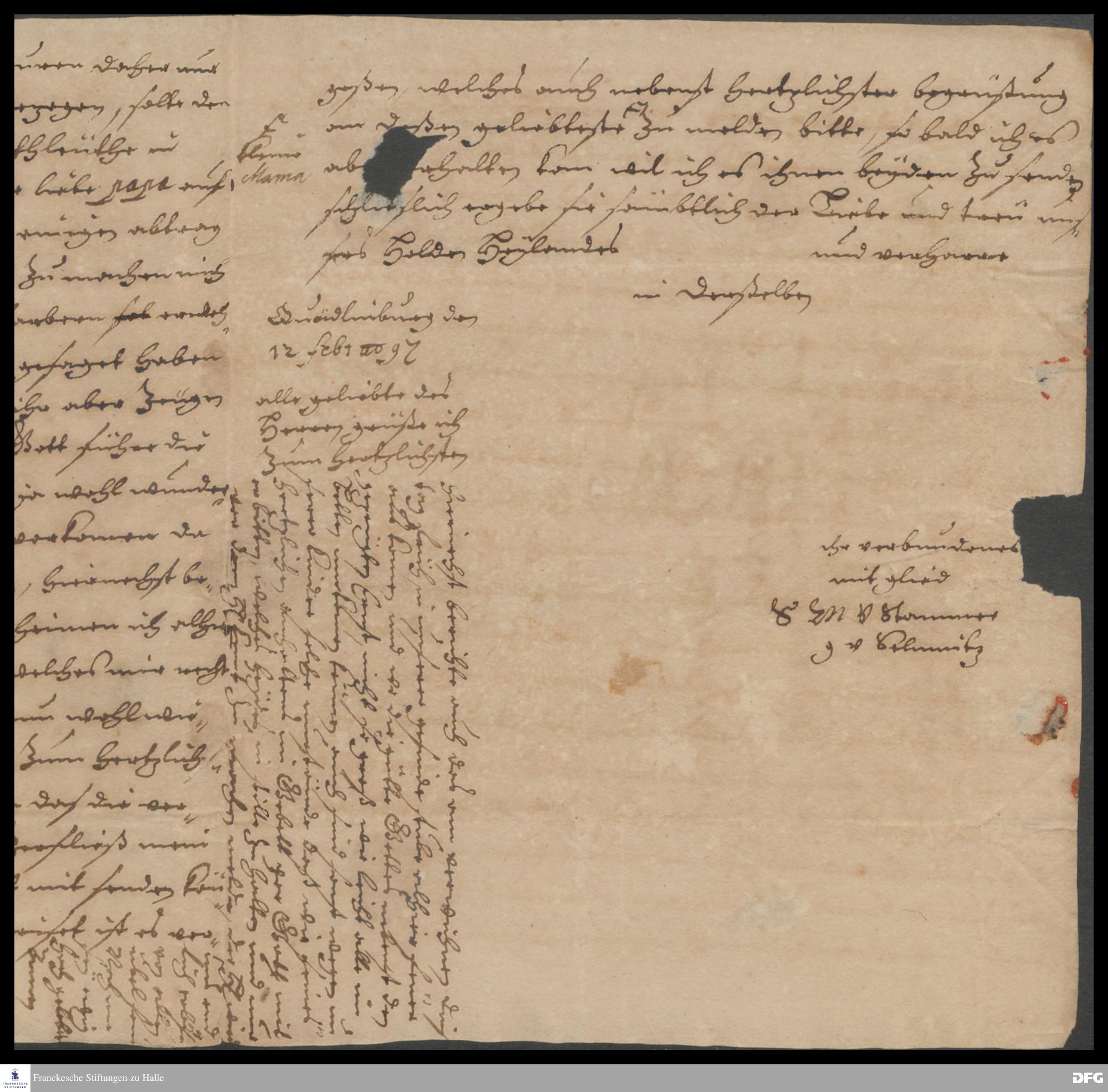 Brief von Sophia Maria v. Stammer an August Hermann Francke.