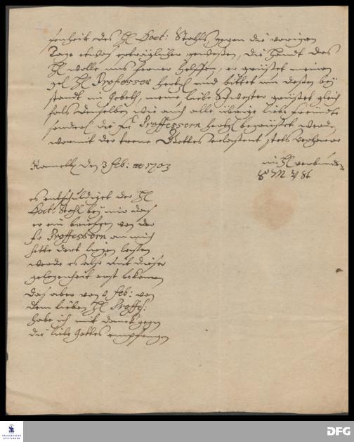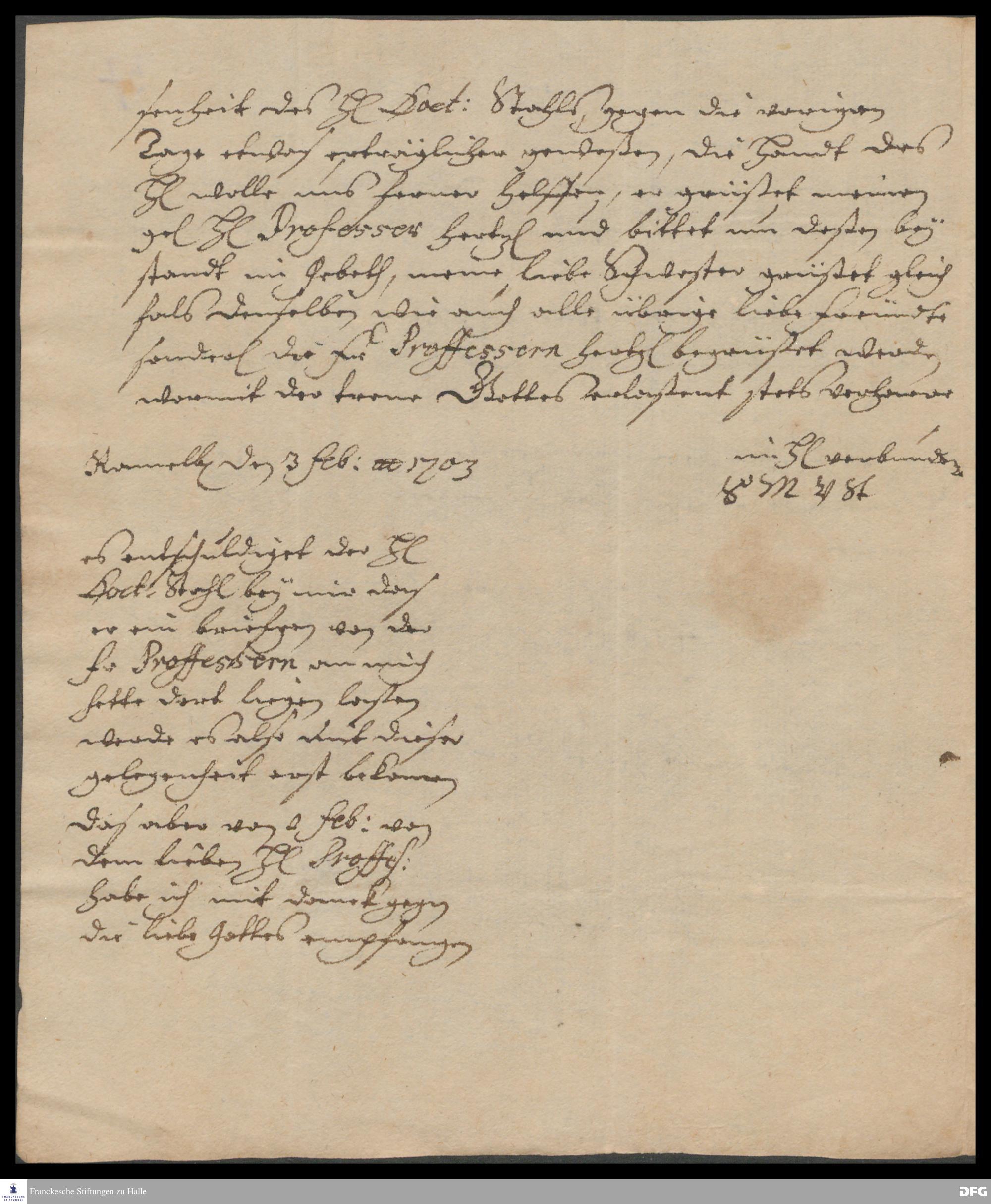 Brief von Sophia Maria v. Stammer an August Hermann Francke.