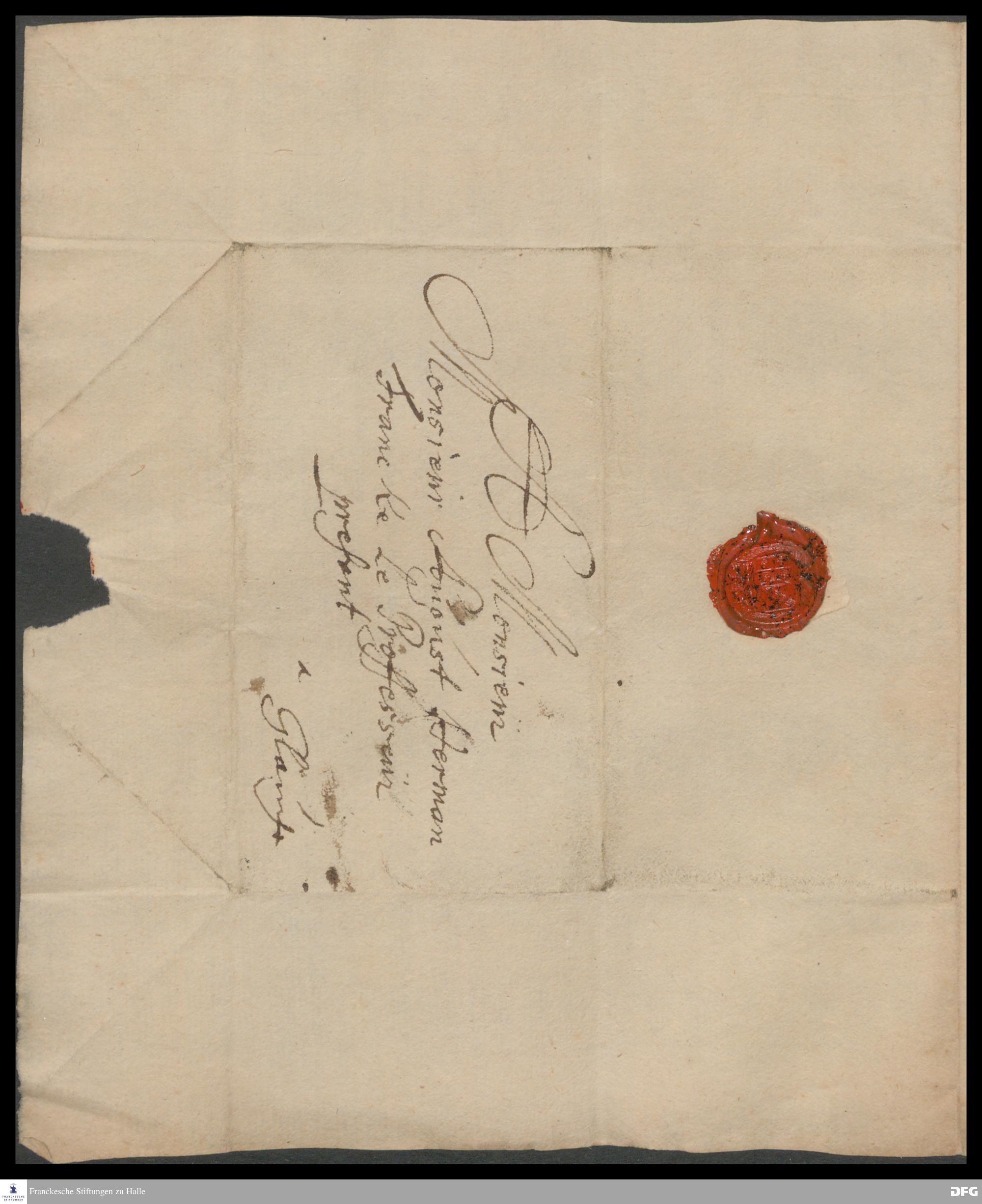 Brief von Sophia Maria v. Stammer an August Hermann Francke.
