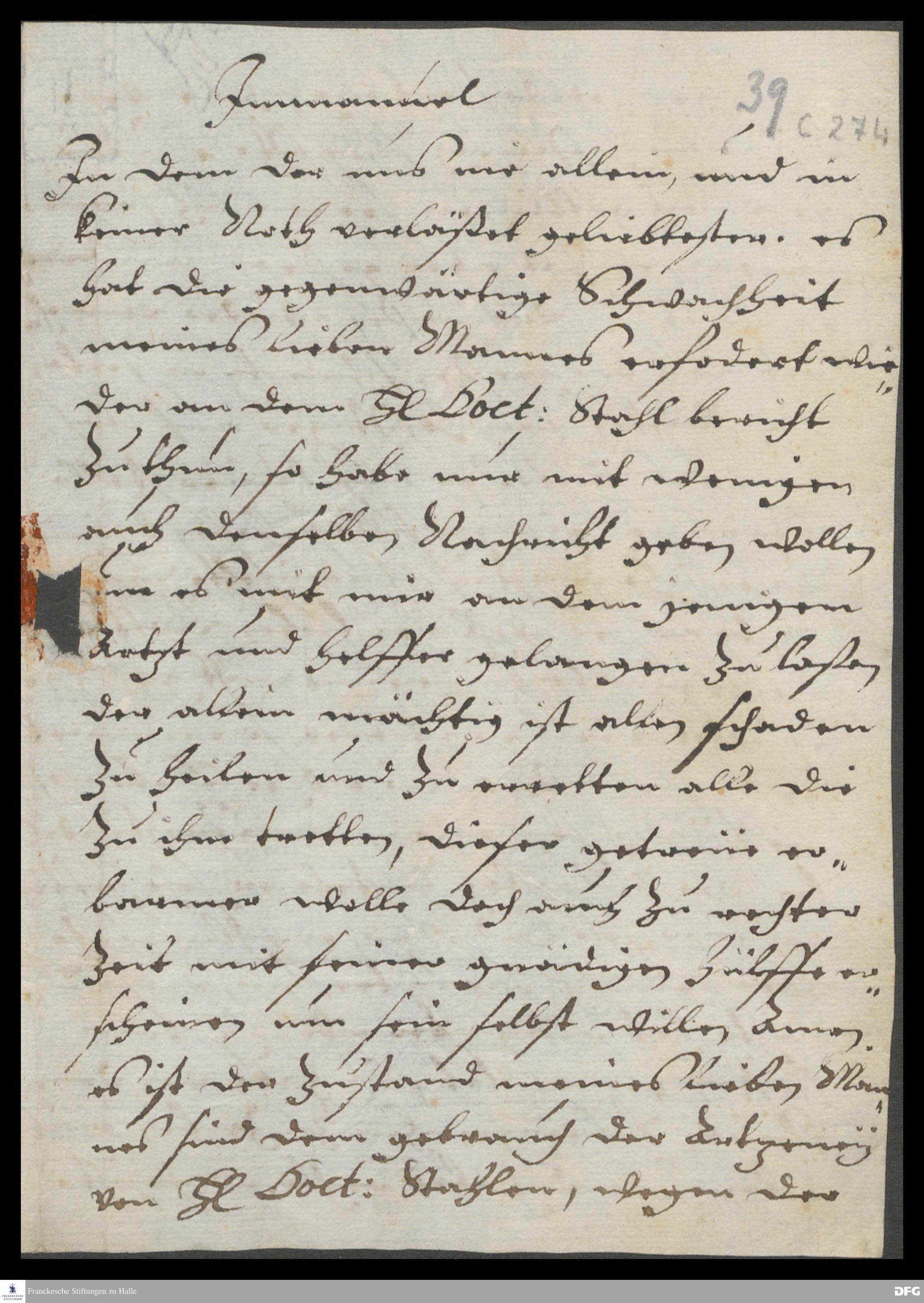 Brief von Sophia Maria v. Stammer an August Hermann Francke.
