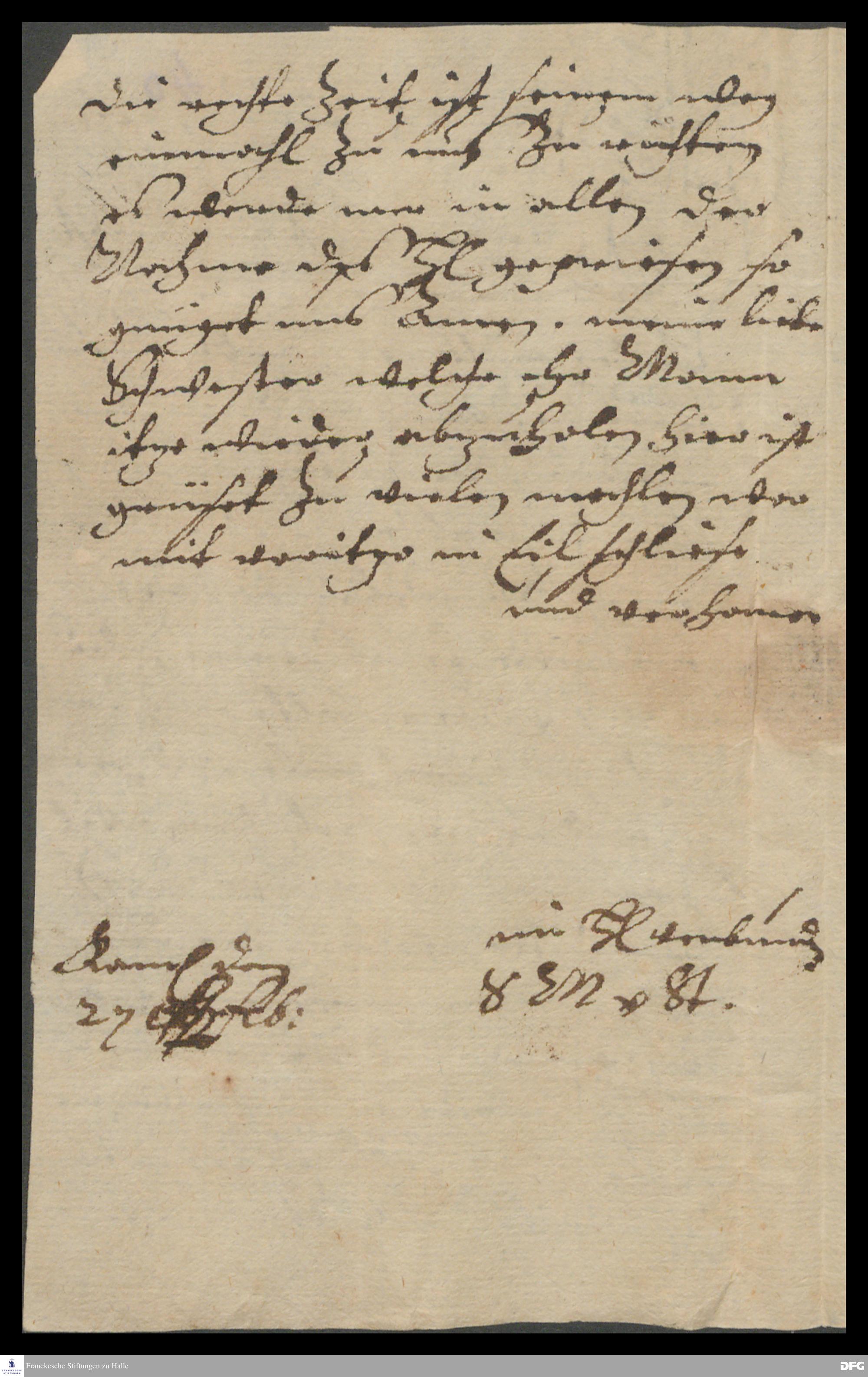 Brief von Sophia Maria v. Stammer an August Hermann Francke.