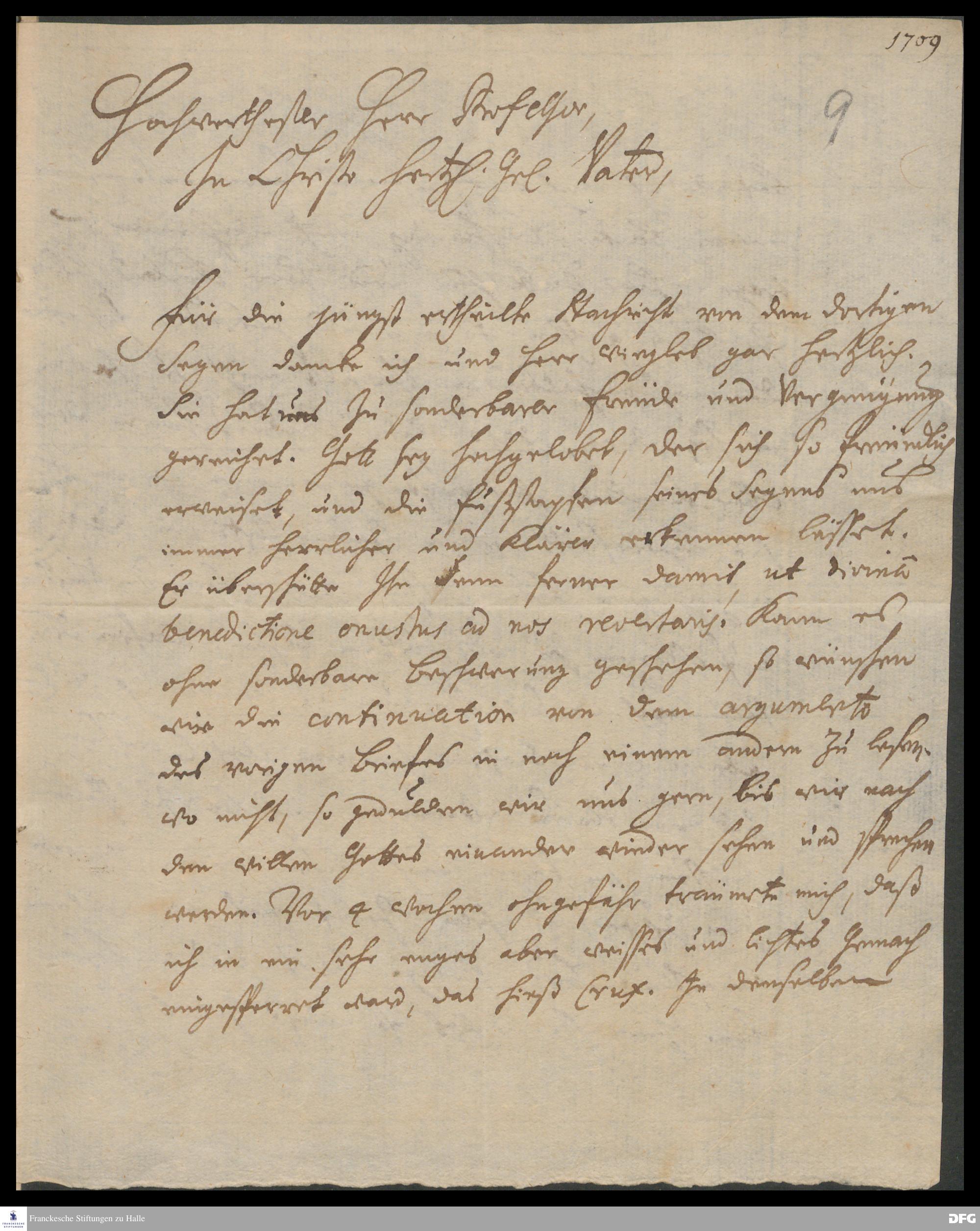 Brief von Johann Anastasius Freylinghausen an August Hermann Francke.