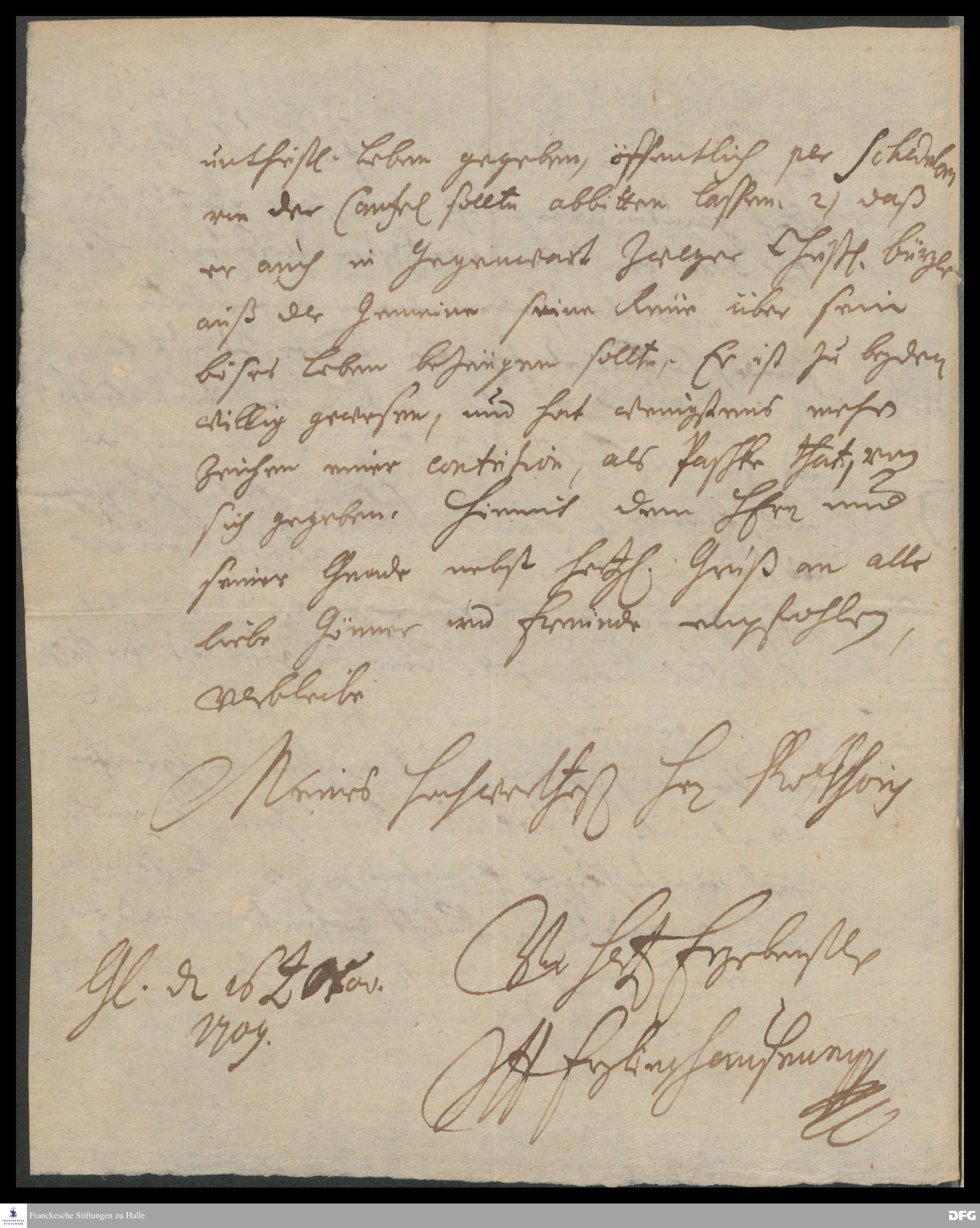 Brief von Johann Anastasius Freylinghausen an August Hermann Francke.