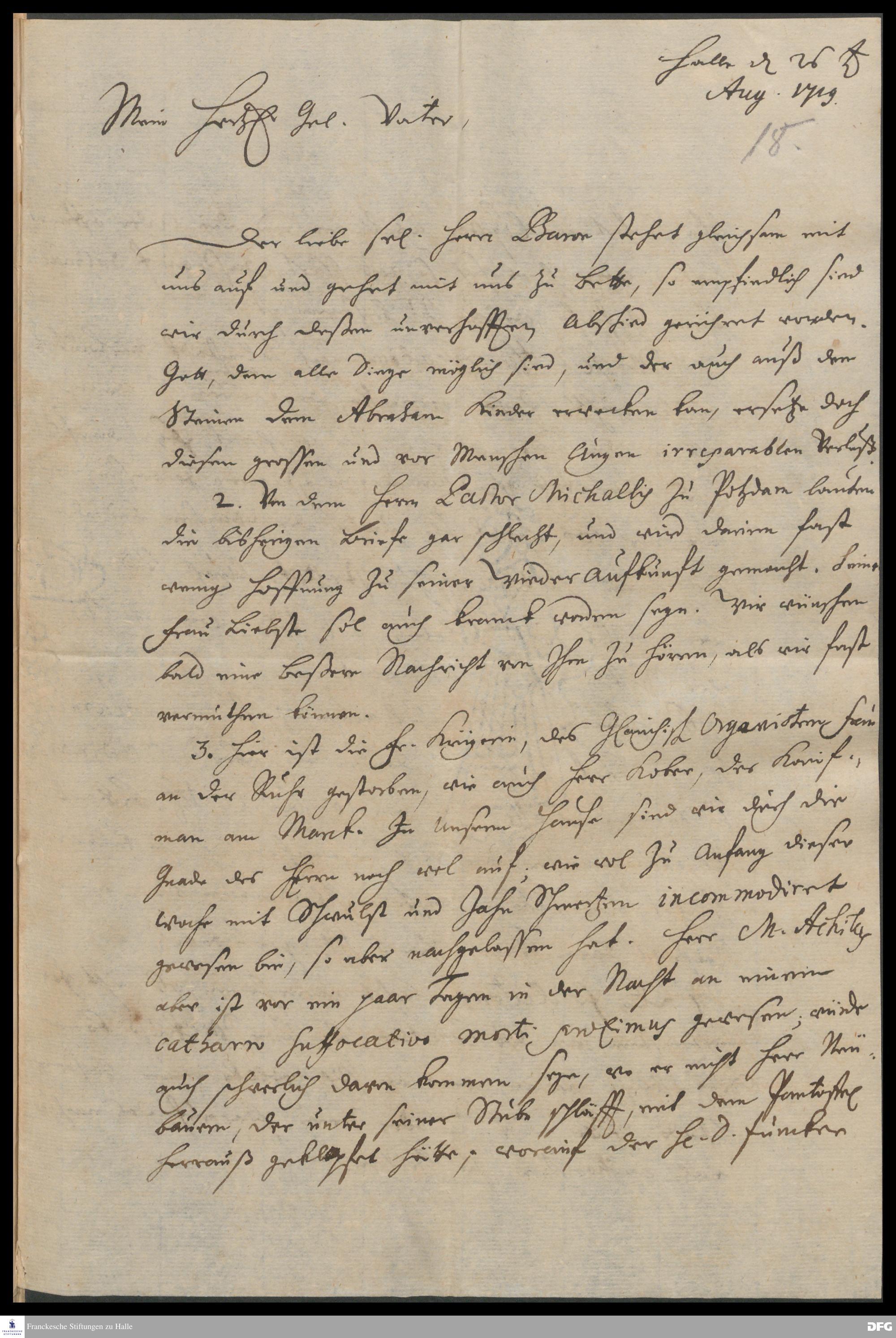 Brief von Johann Anastasius Freylinghausen an August Hermann Francke.
