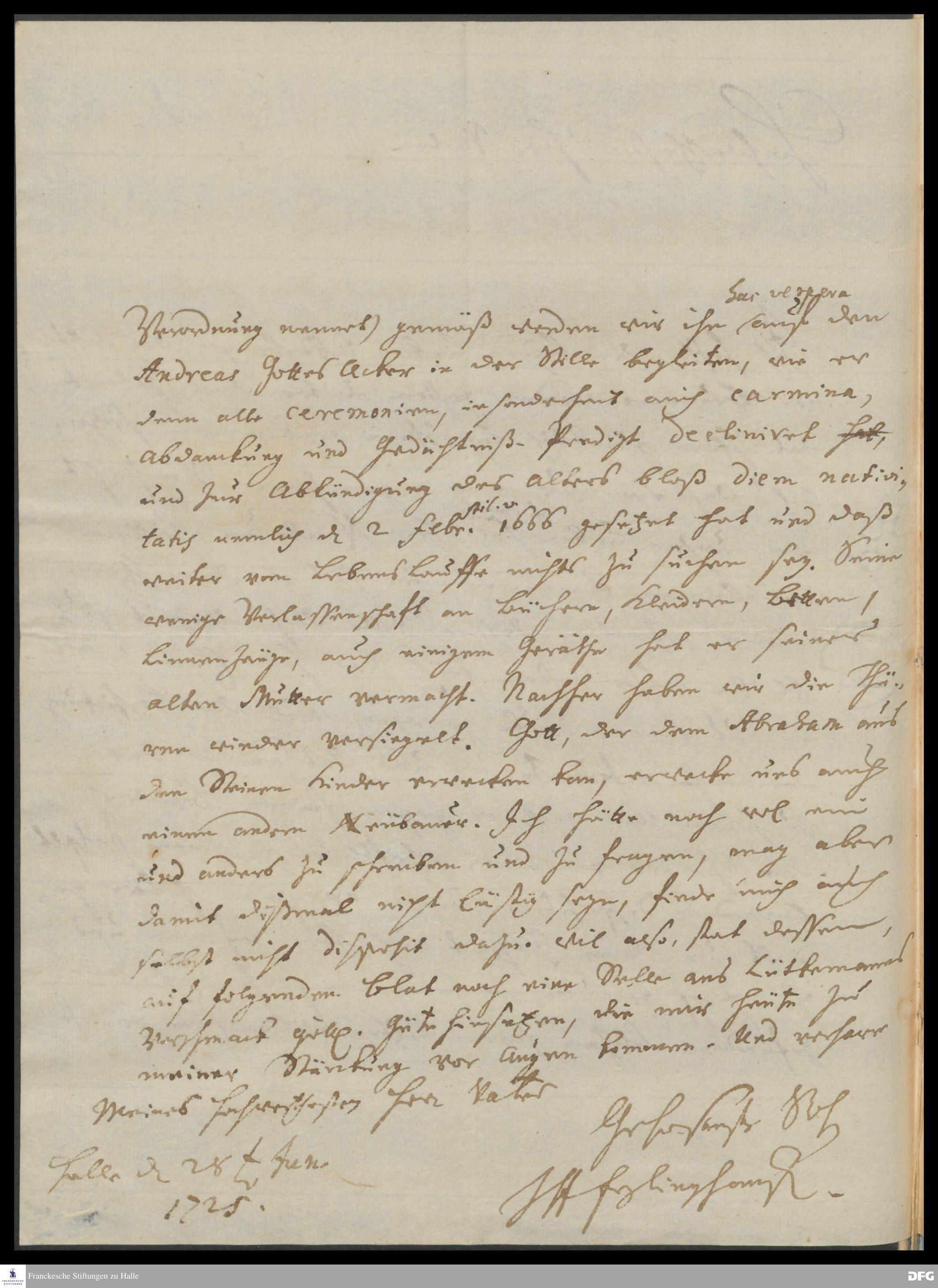 Brief von Johann Anastasius Freylinghausen an August Hermann Francke.
