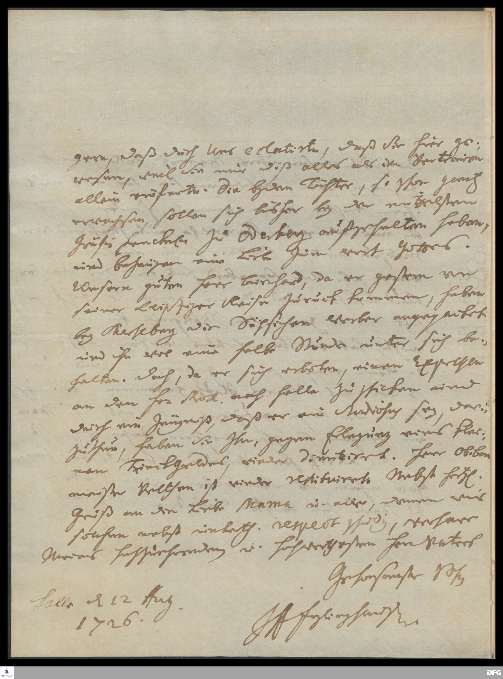 Brief von Johann Anastasius Freylinghausen an August Hermann Francke.