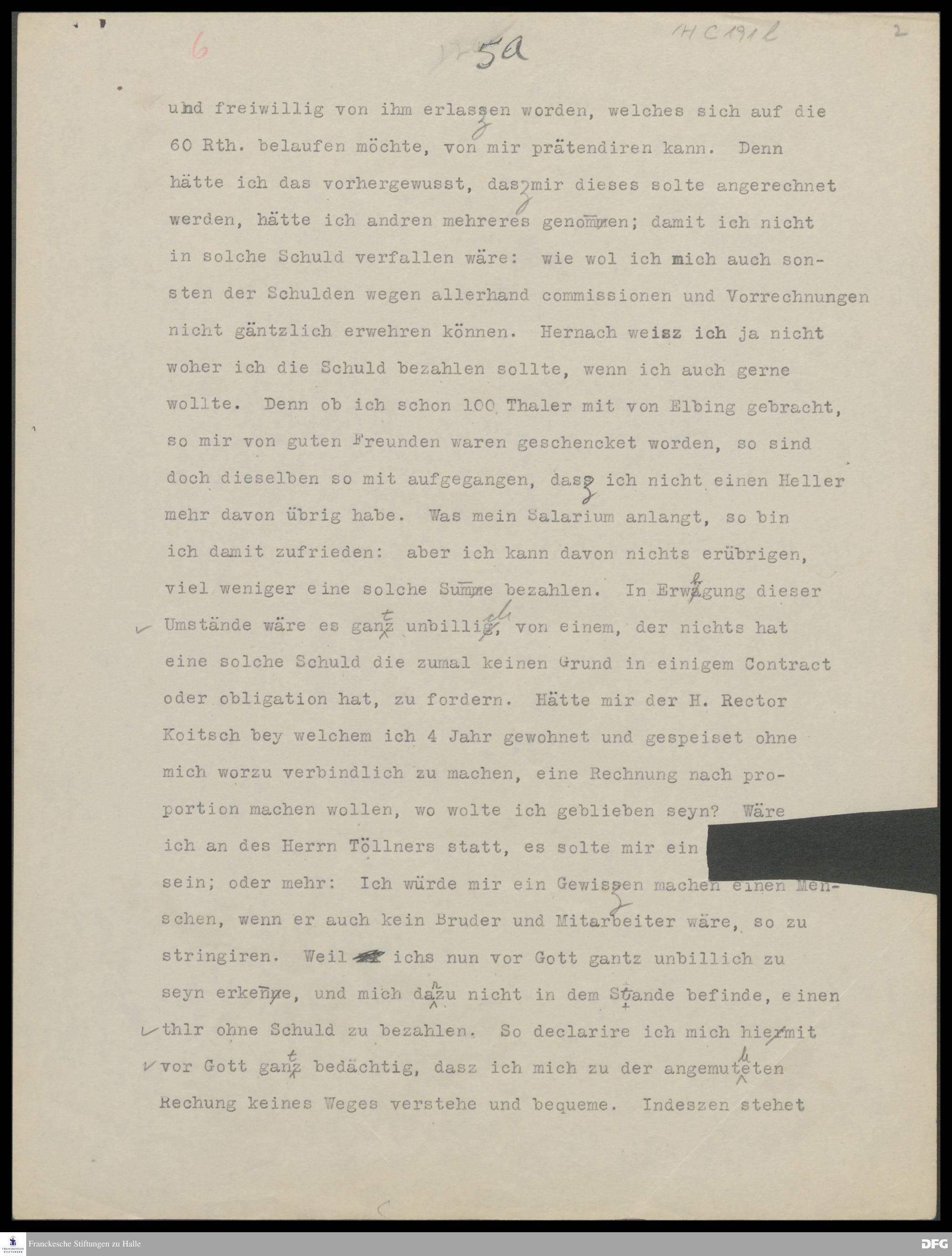 Brief von Johann Michael Hempel an August Hermann Francke.