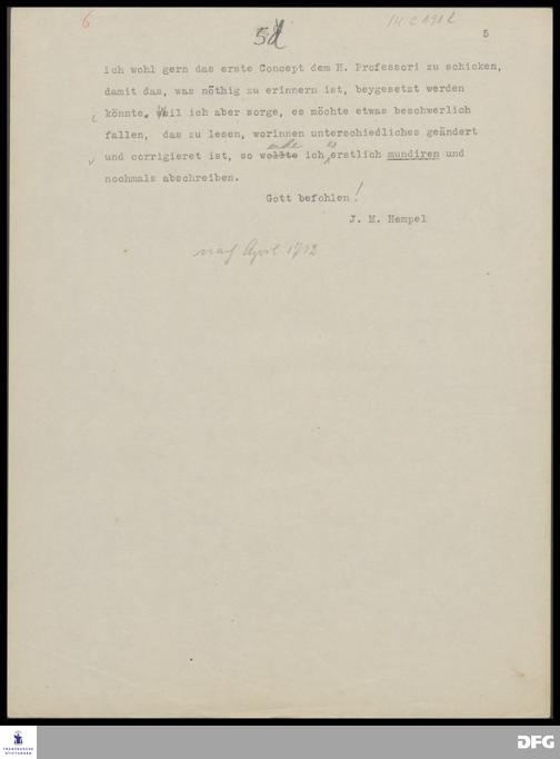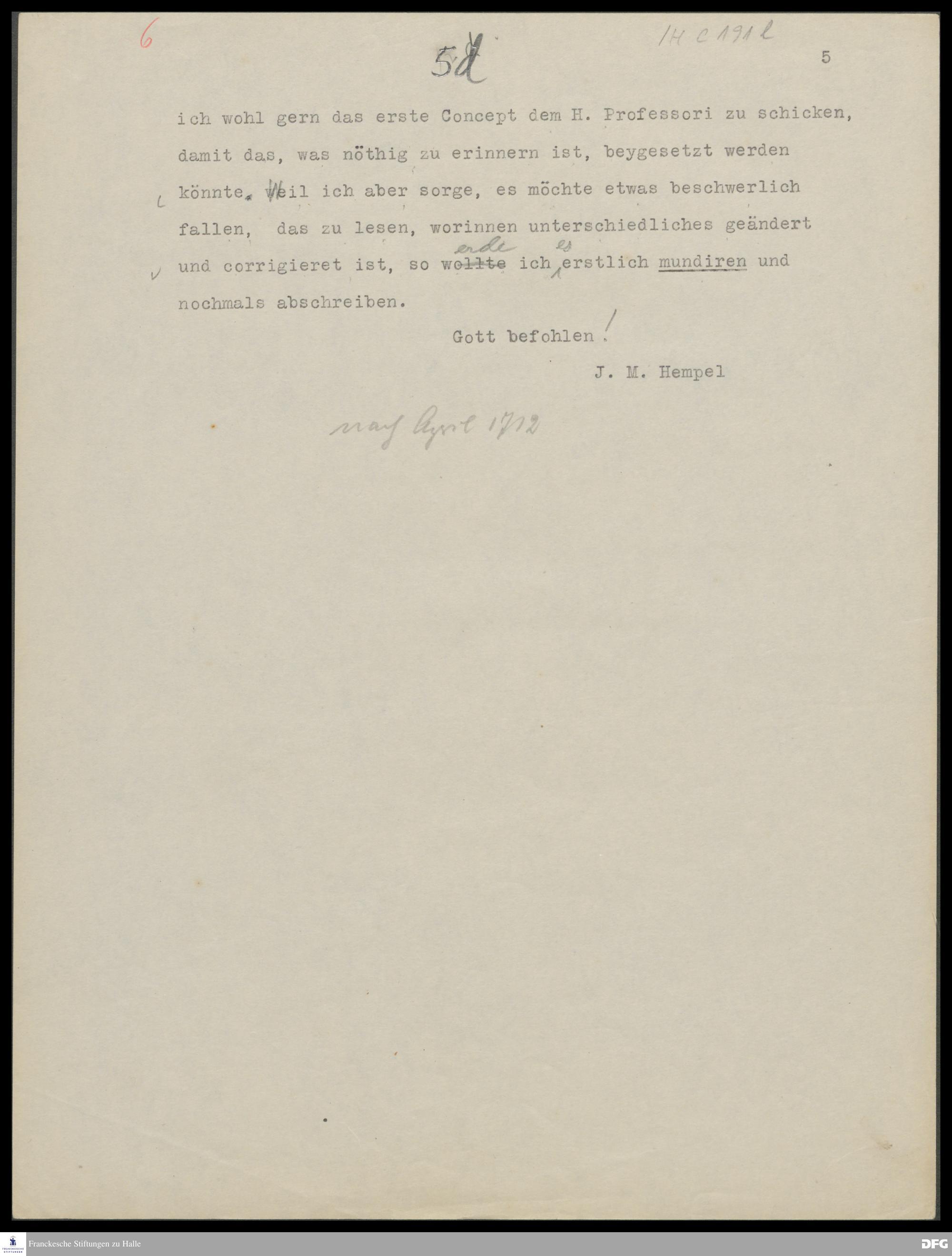 Brief von Johann Michael Hempel an August Hermann Francke.