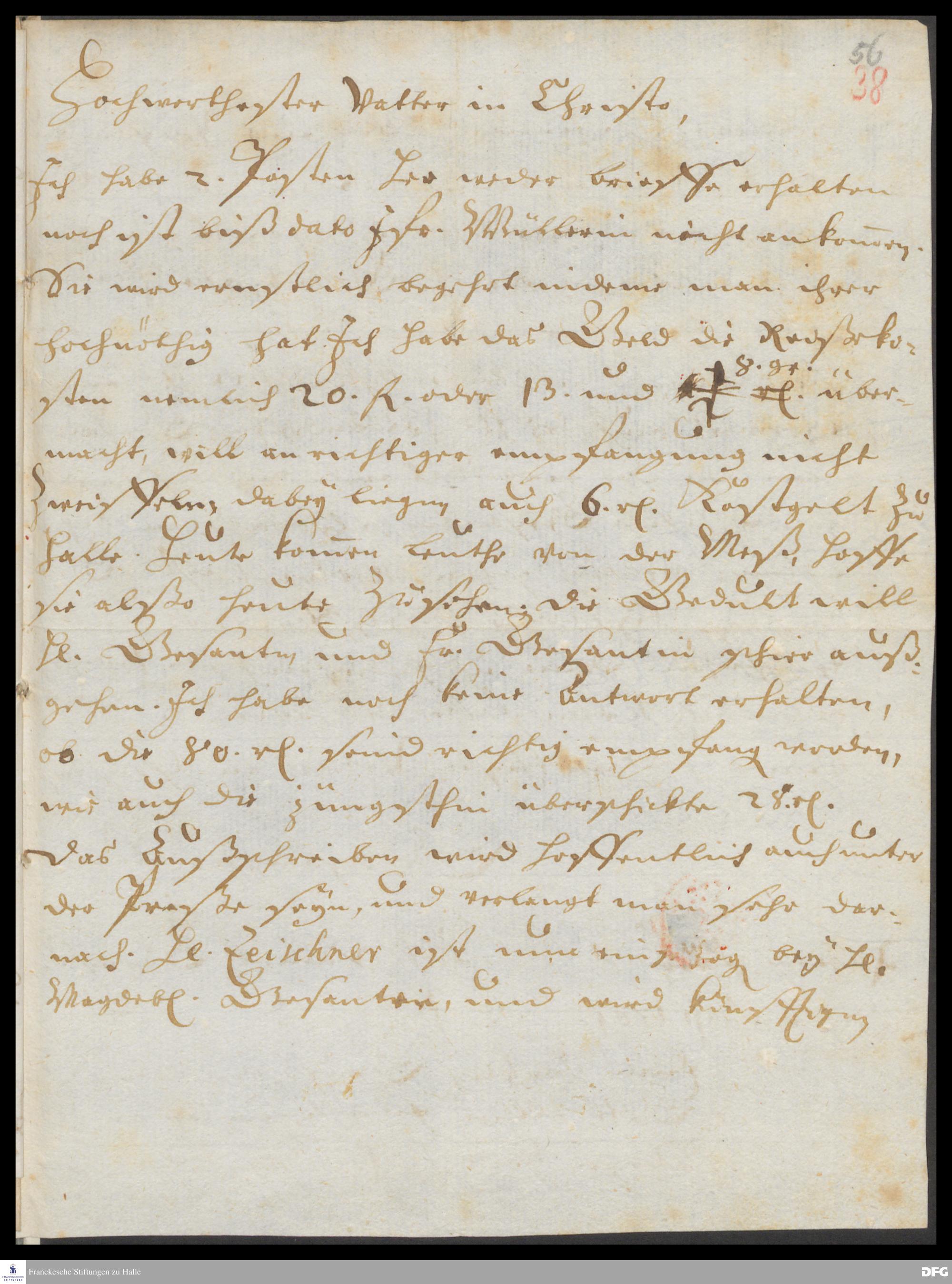 Brief von Johann Daniel Gross an August Hermann Francke.
