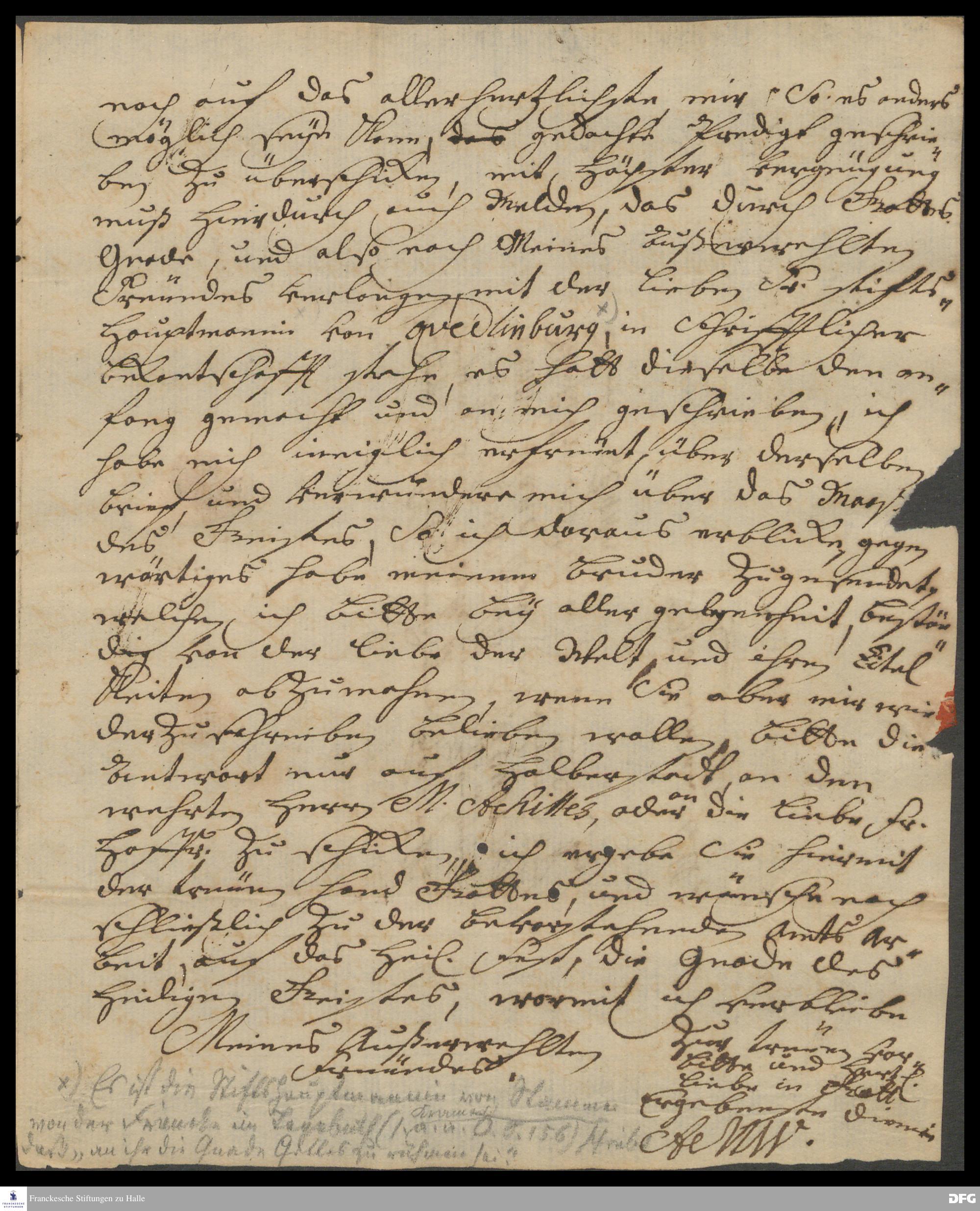 Brief von Anna Magdalena Francke an August Hermann Francke.