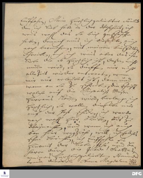 Brief von Anna Magdalena Francke an August Hermann Francke.