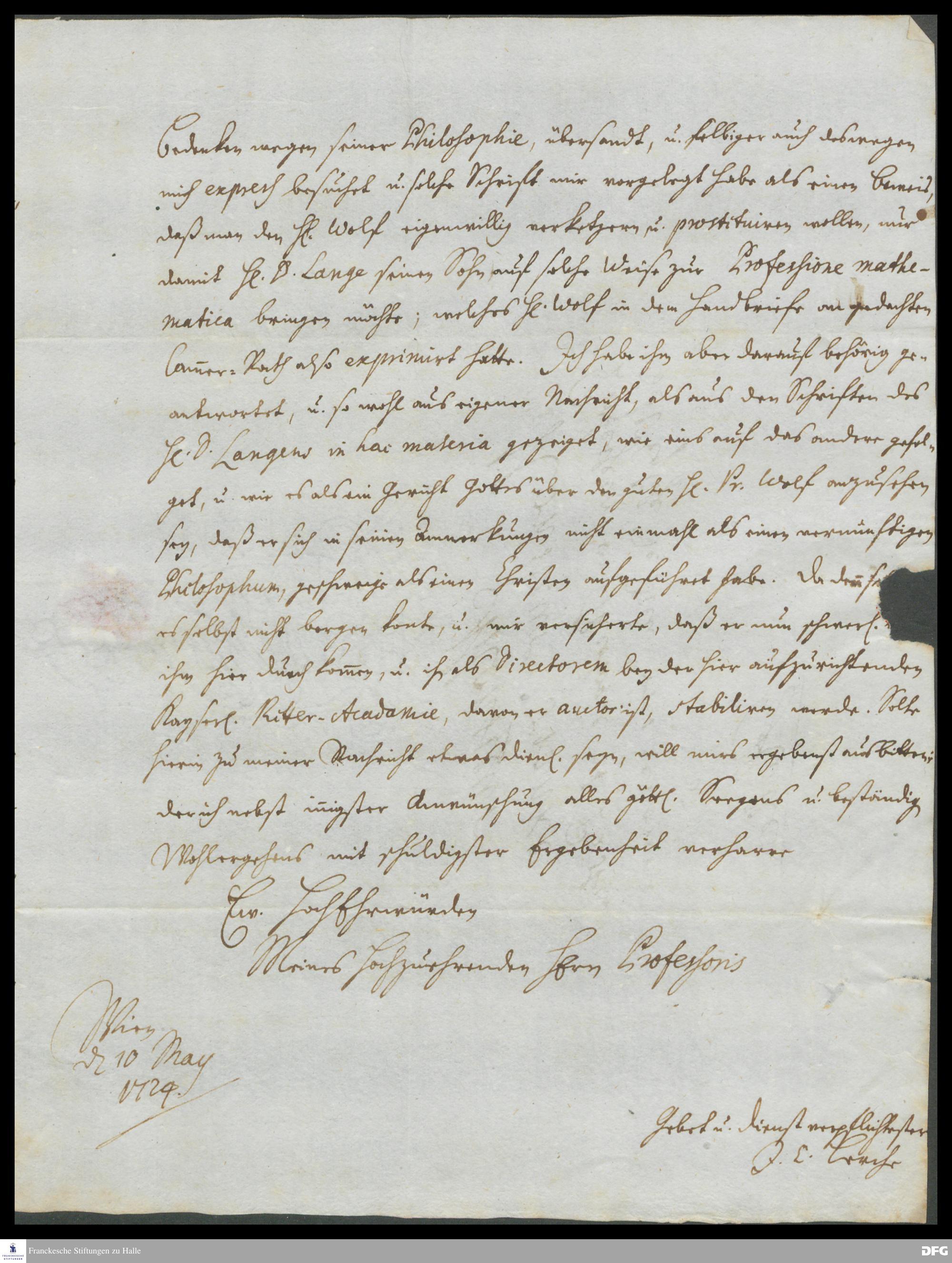 Brief von Johann Christian Lerche an August Hermann Francke.
