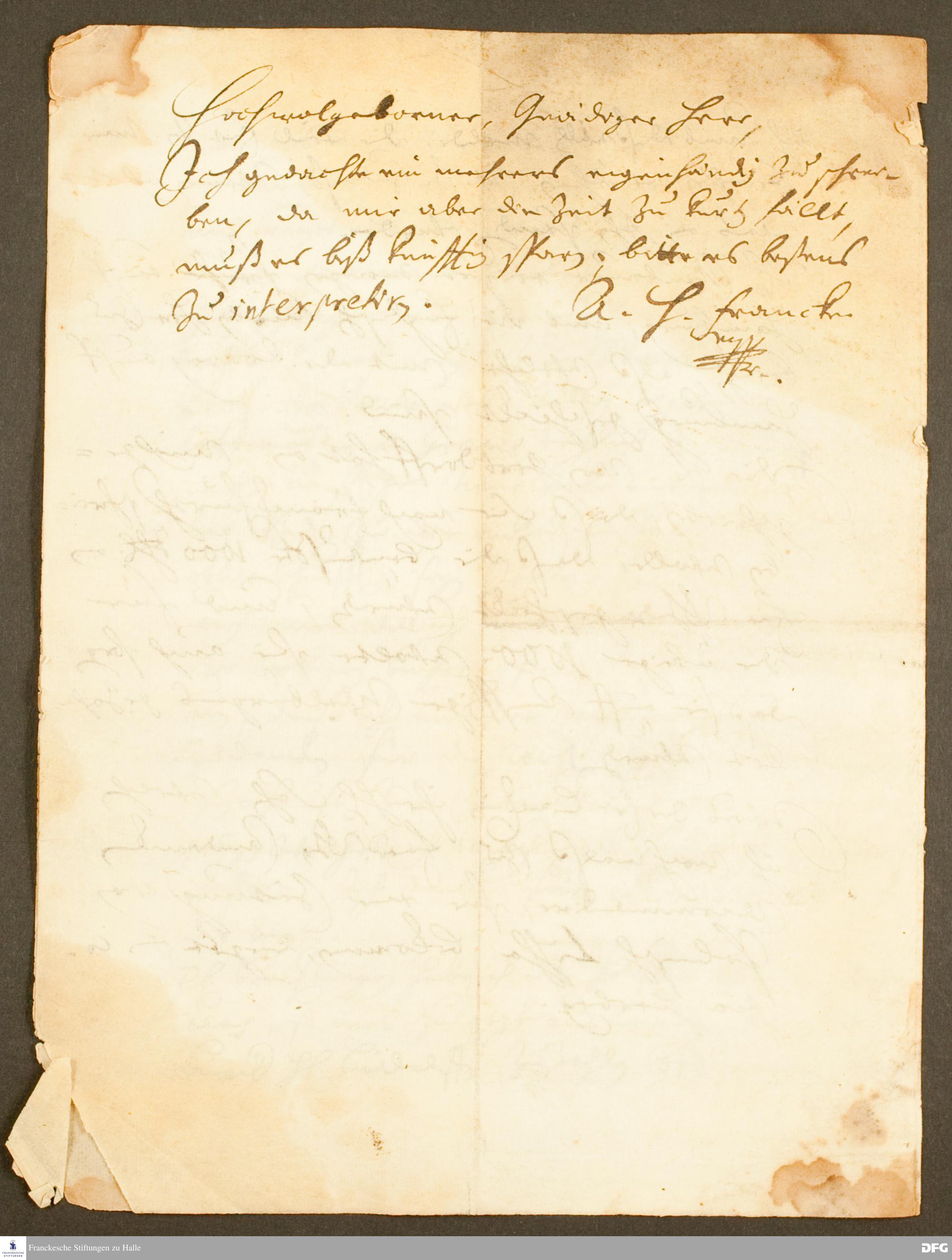 Brief von August Hermann Francke an Carl Hildebrand v. Canstein.