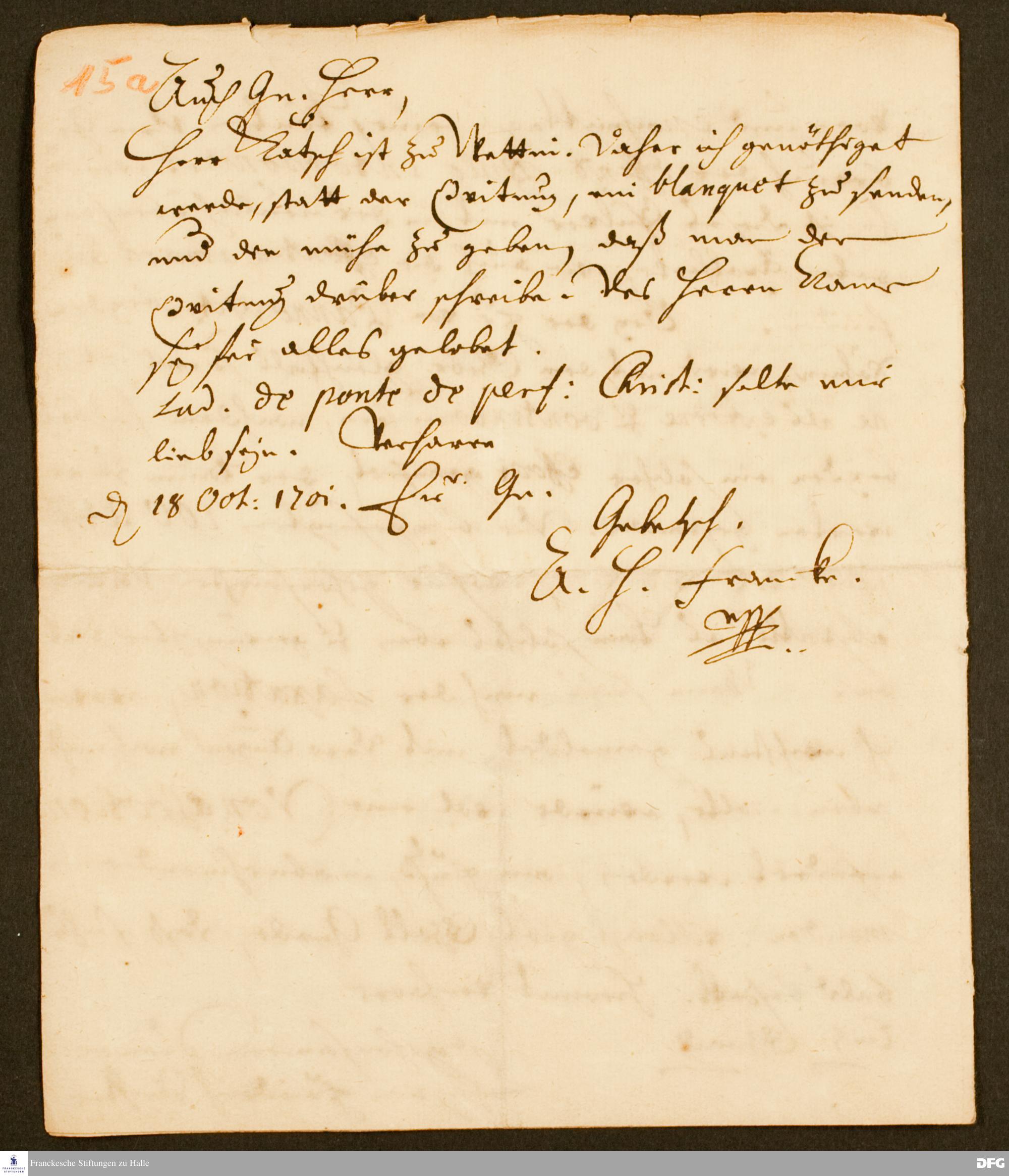 Postskriptum von August Hermann Francke an Carl Hildebrand v. Canstein.