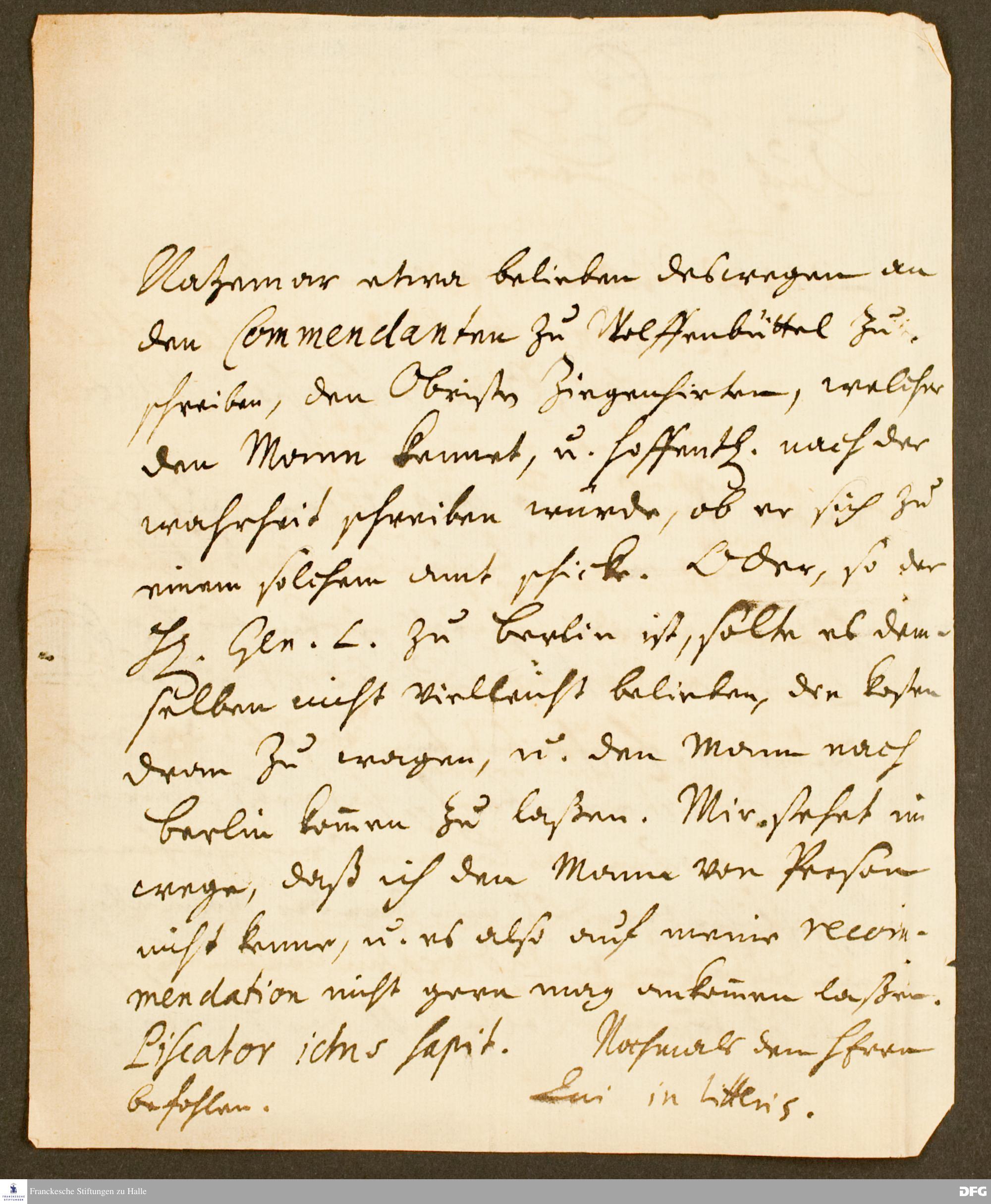Postskriptum zu einem Brief von August Hermann Francke an Carl Hildebrand v. Canstein.