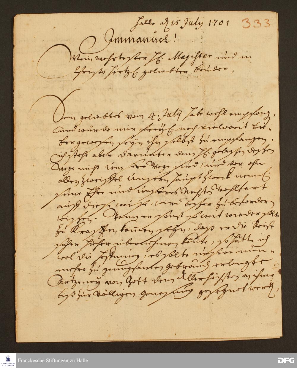 Brief von August Hermann Francke an Johann Daniel Herrnschmidt.
