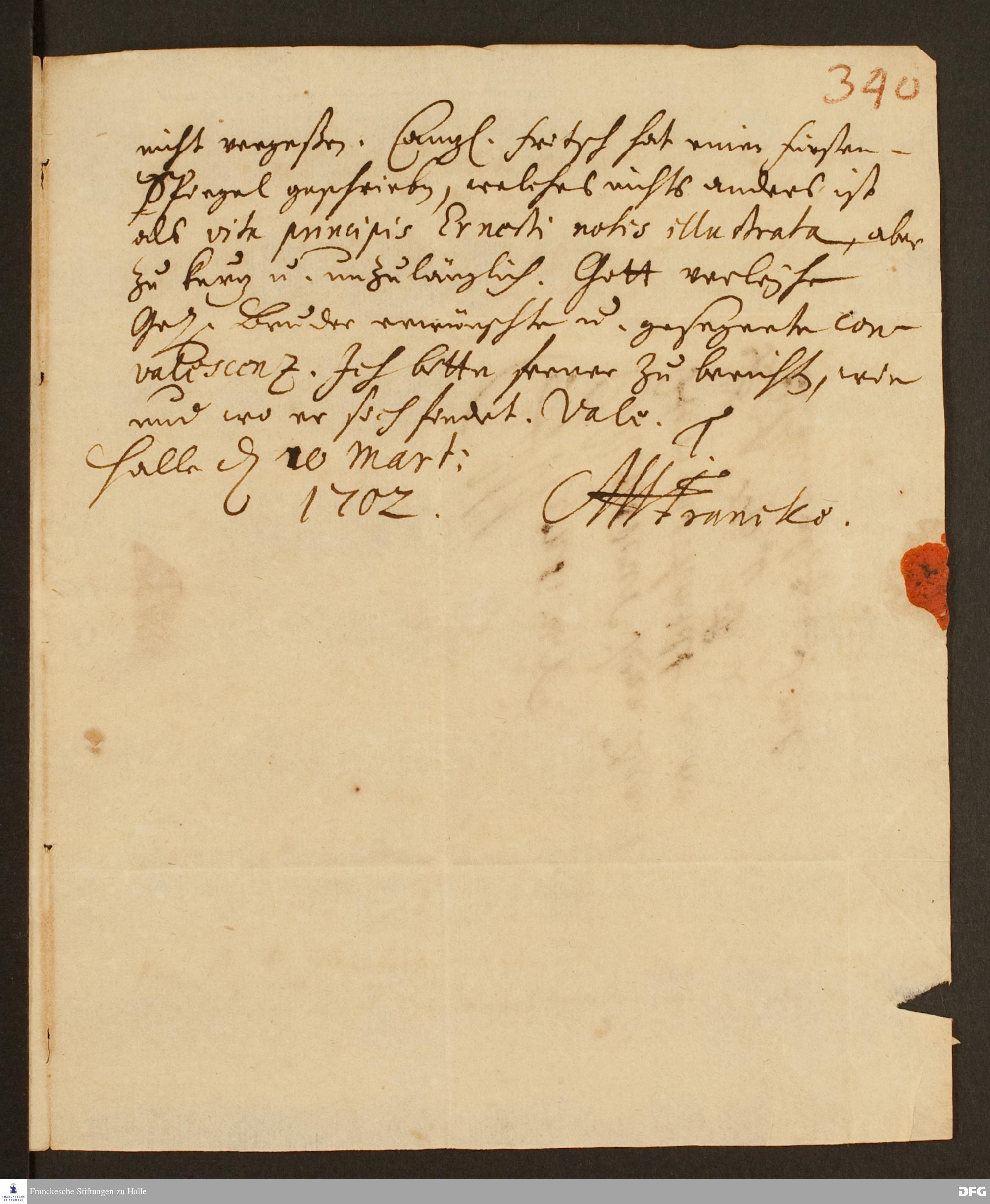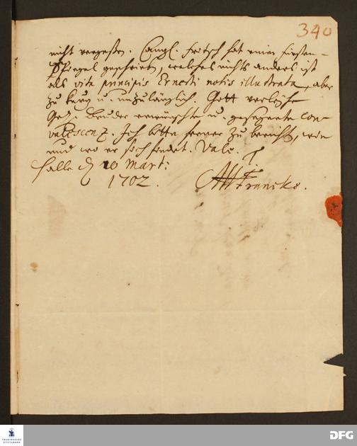 Brief von August Hermann Francke an Johann Daniel Herrnschmidt.