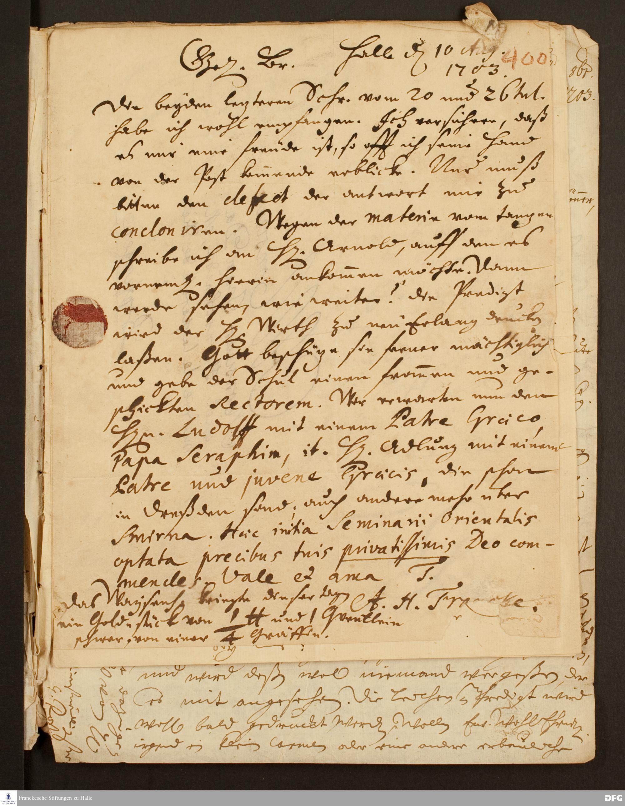 Brief von August Hermann Francke an Johann Daniel Herrnschmidt.