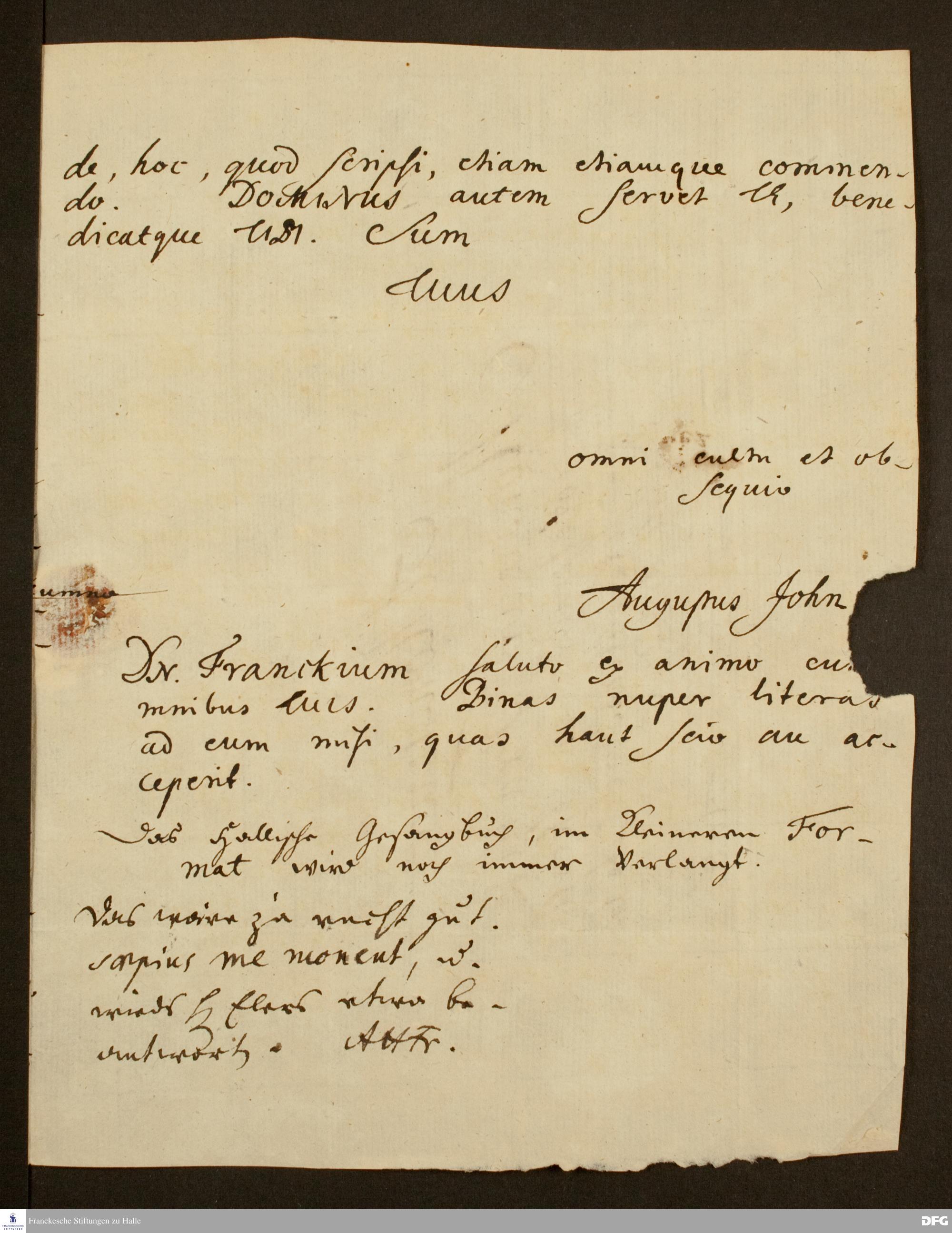 Brief von August John an August Hermann Francke.