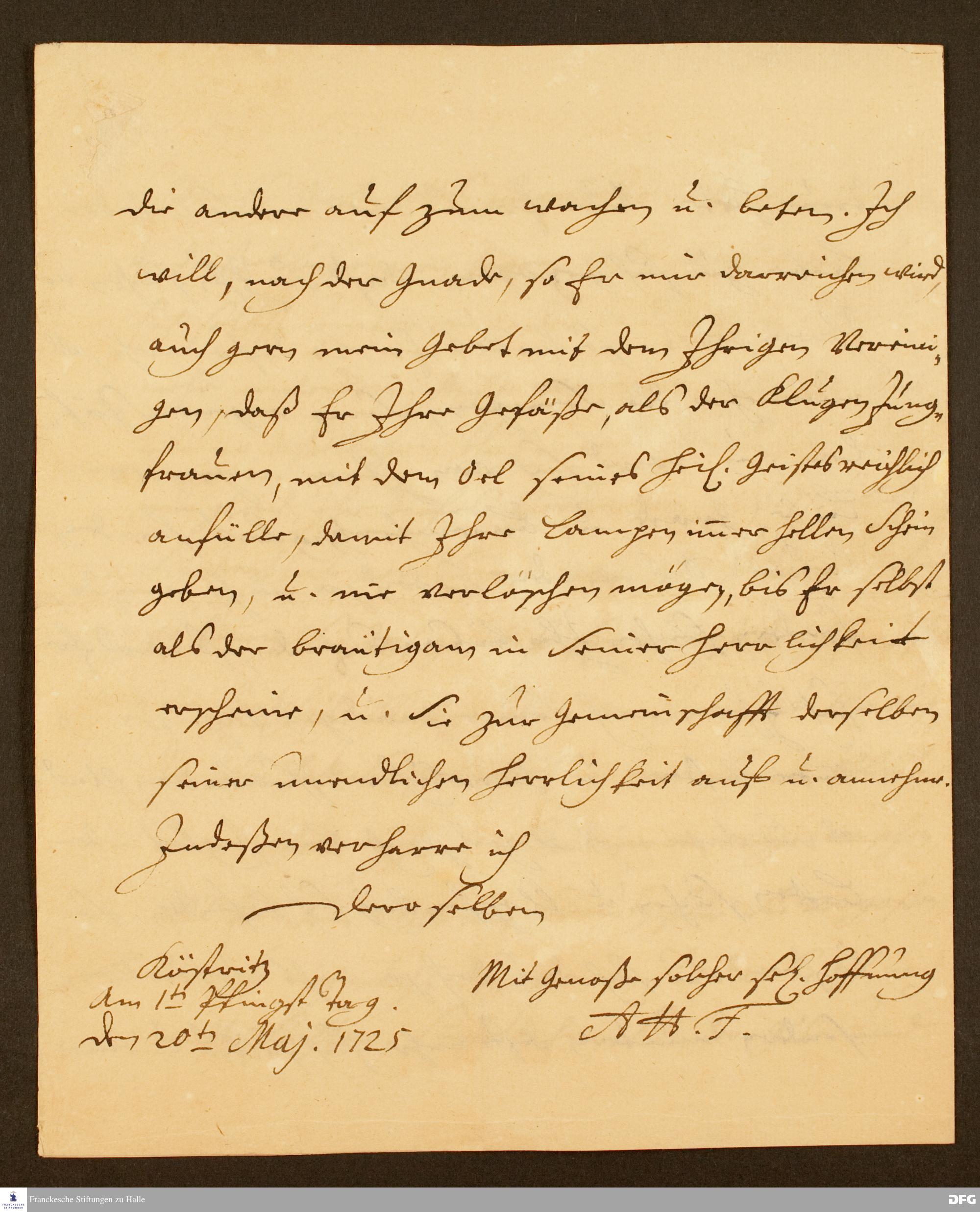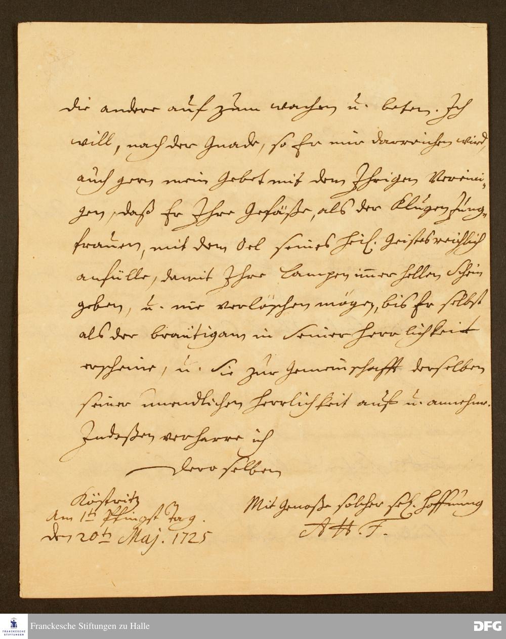 Brief von August Hermann Francke an Anna Helena Henriette Henckel von Donnersmarck, Barbara Charlotte Luise Henckel v. Donnersmarck, Helene Ernestine Henckel v. Donnersmarck, Charlotte Luise Henckel v. Donnersmarck, Johanna Eleonore Josephe Henckel v. Donnersmarck.