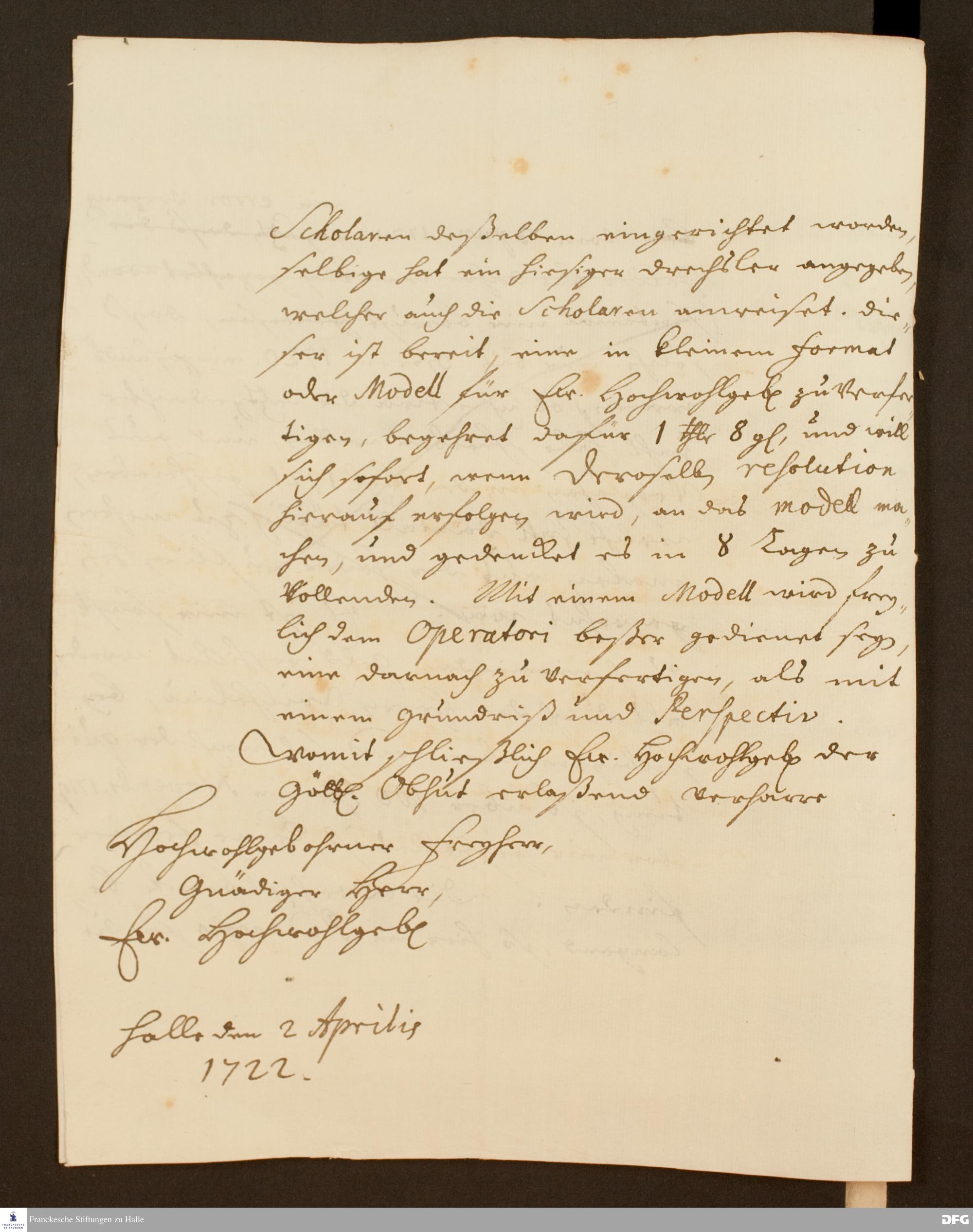 Brief von August Hermann Francke an Ernst Friedrich v. Seckendorff.