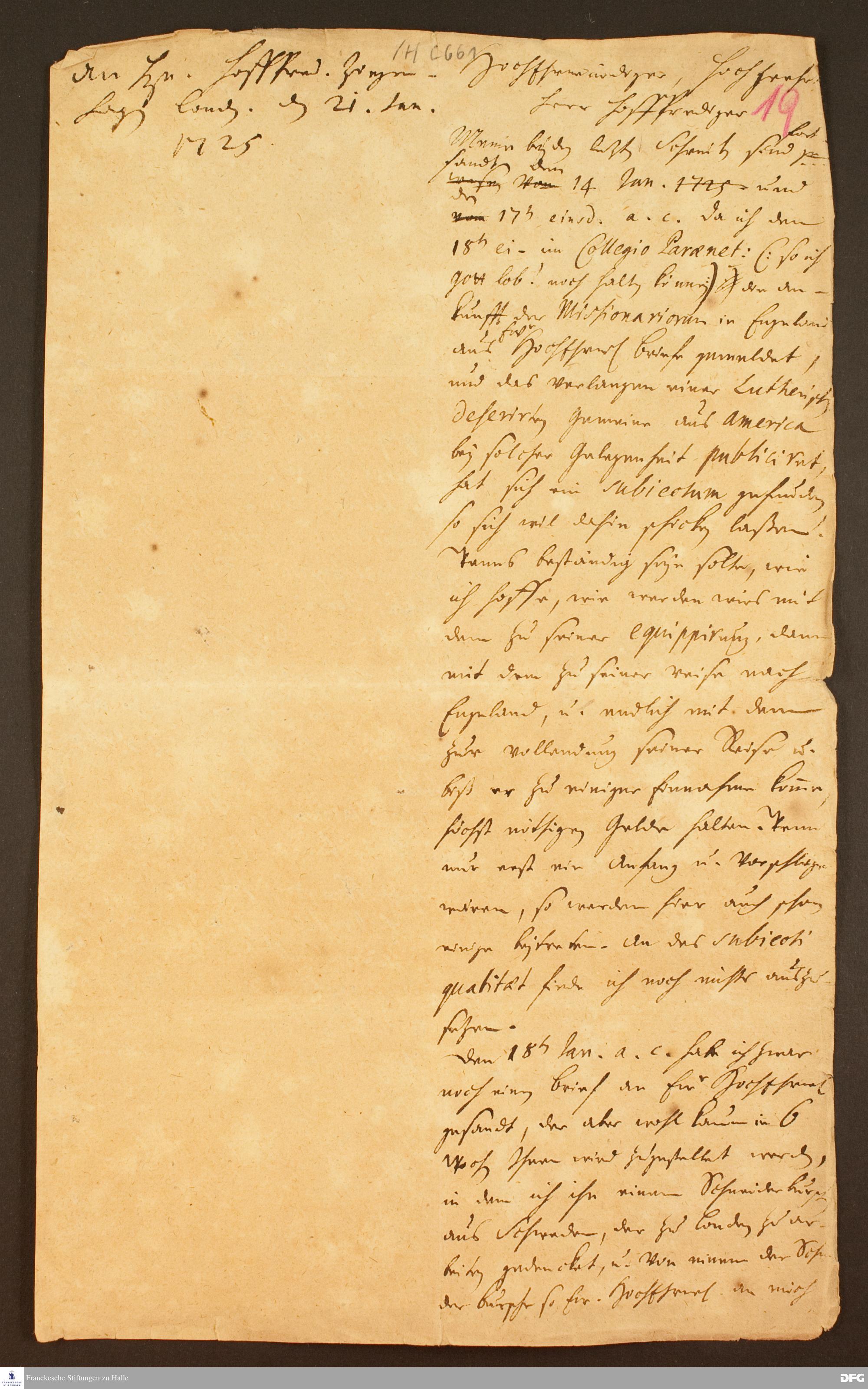 Brief von August Hermann Francke an Friedrich Michael Ziegenhagen.