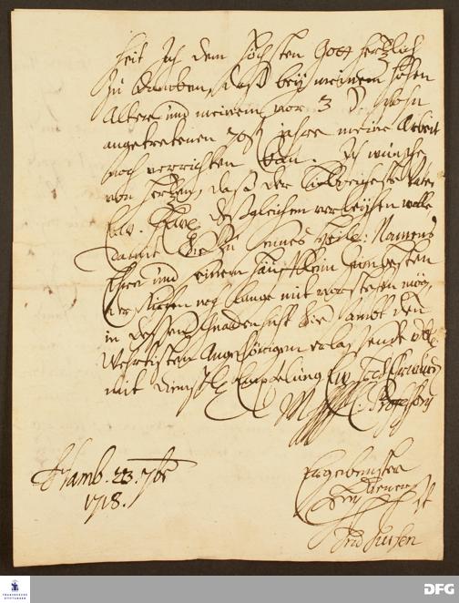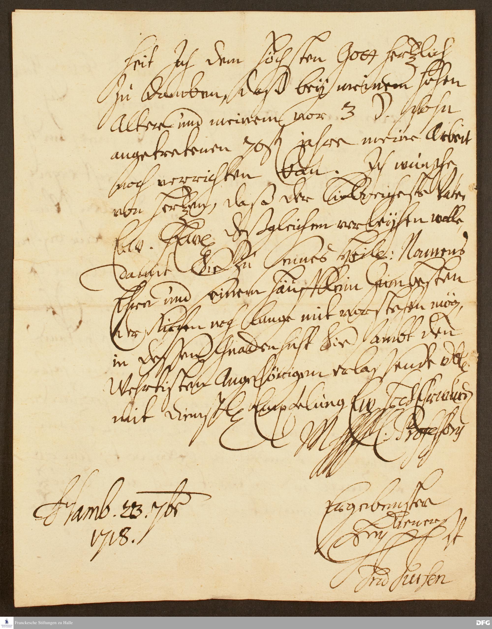 Brief von Fridrich Fussen an August Hermann Francke.