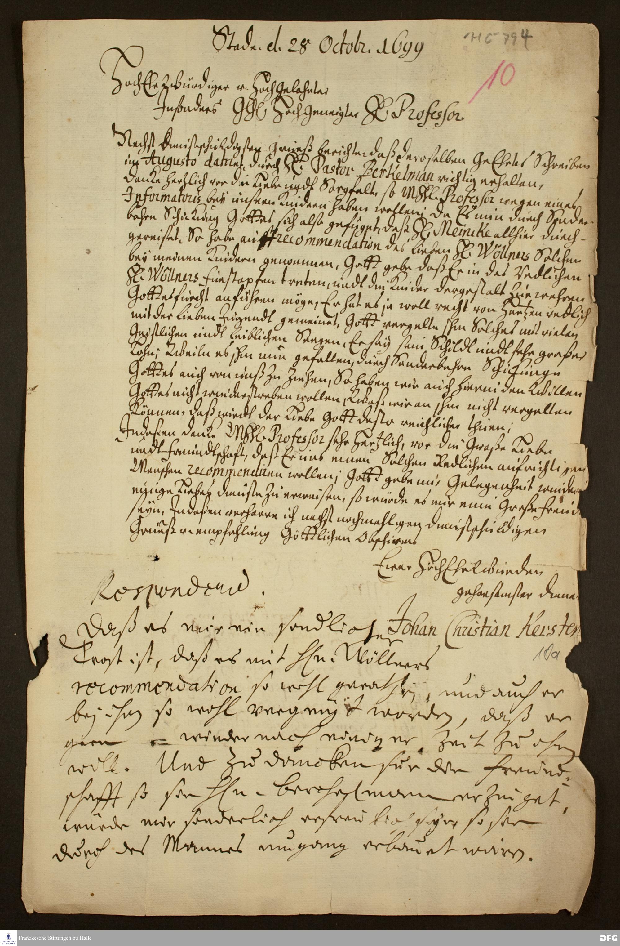 Brief von August Hermann Francke an Johann Christian Kerstens.