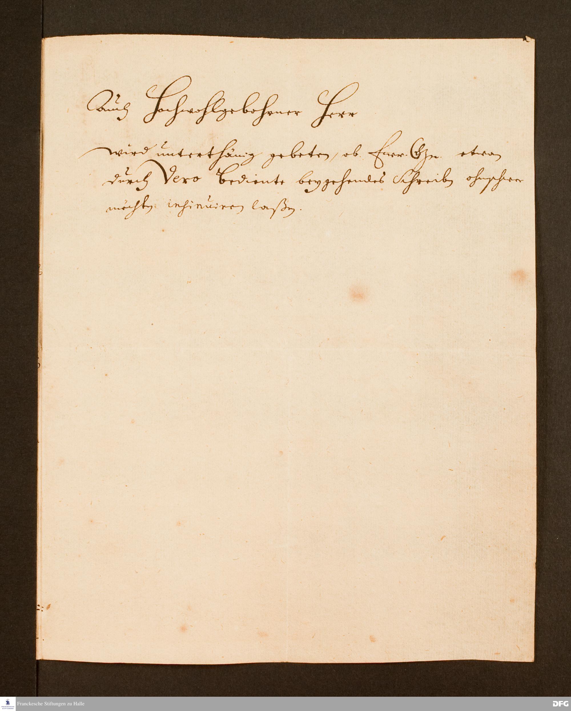 Brief von August Hermann Francke an Georg Rudolph v. Schweinitz.