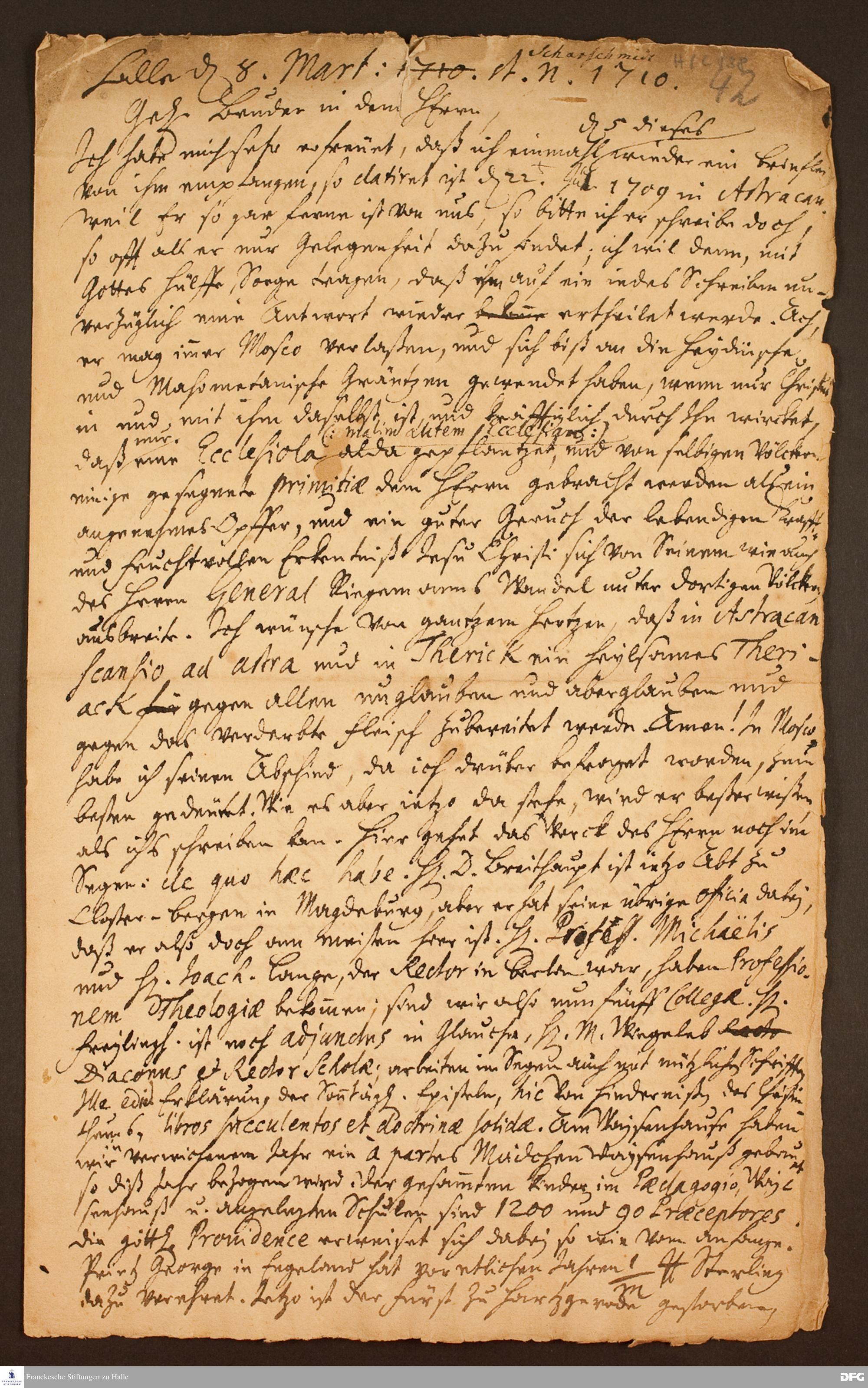 Brief von August Hermann Francke an Justus Samuel Scharschmidt.