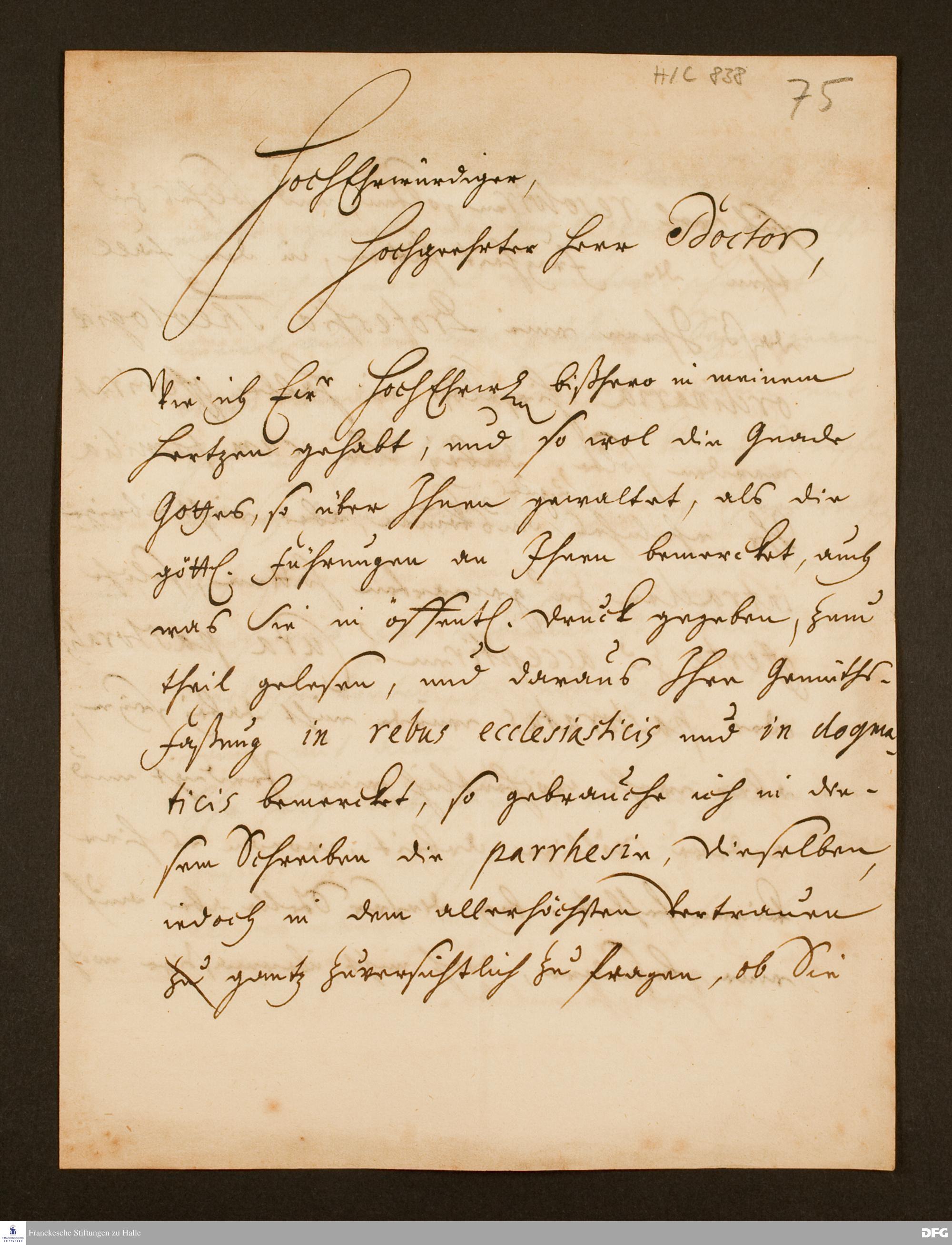 Brief von August Hermann Francke an Michael Christian Russmeyer.