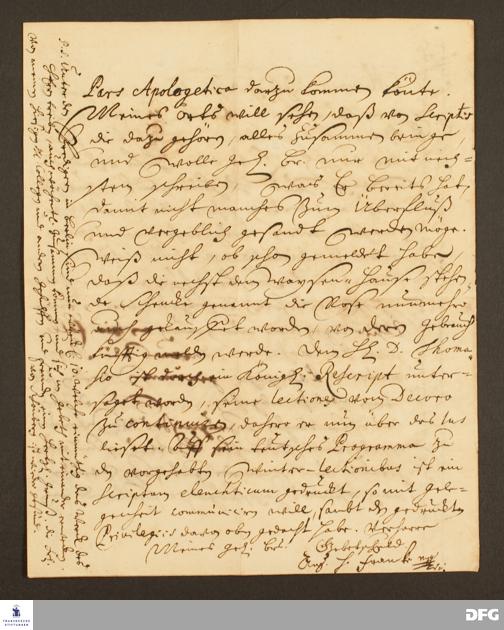 Brief von August Hermann Francke an Johann Daniel Herrnschmidt.
