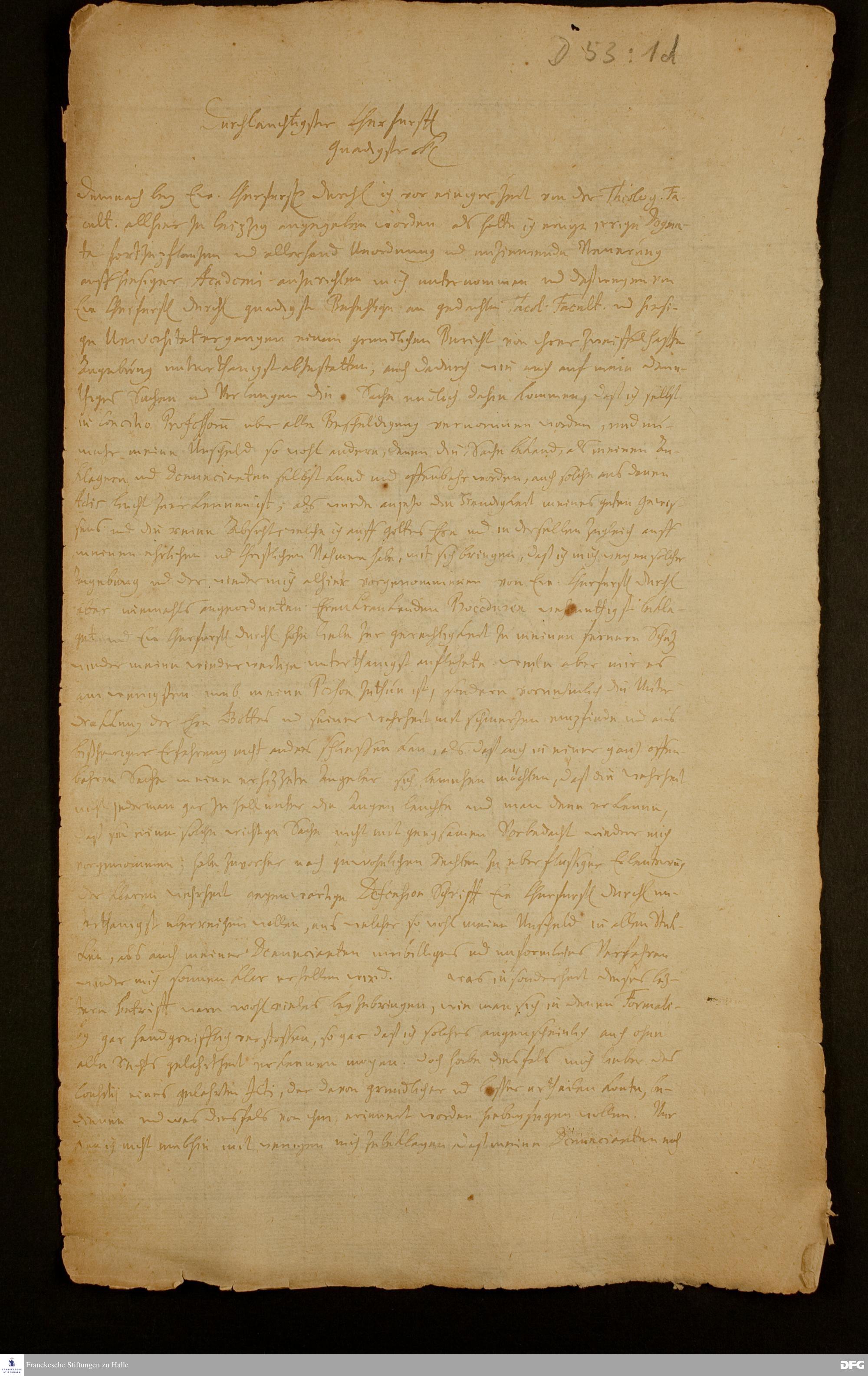 Brief von August Hermann Francke an Johann Georg III., Kurfürst von Sachsen.