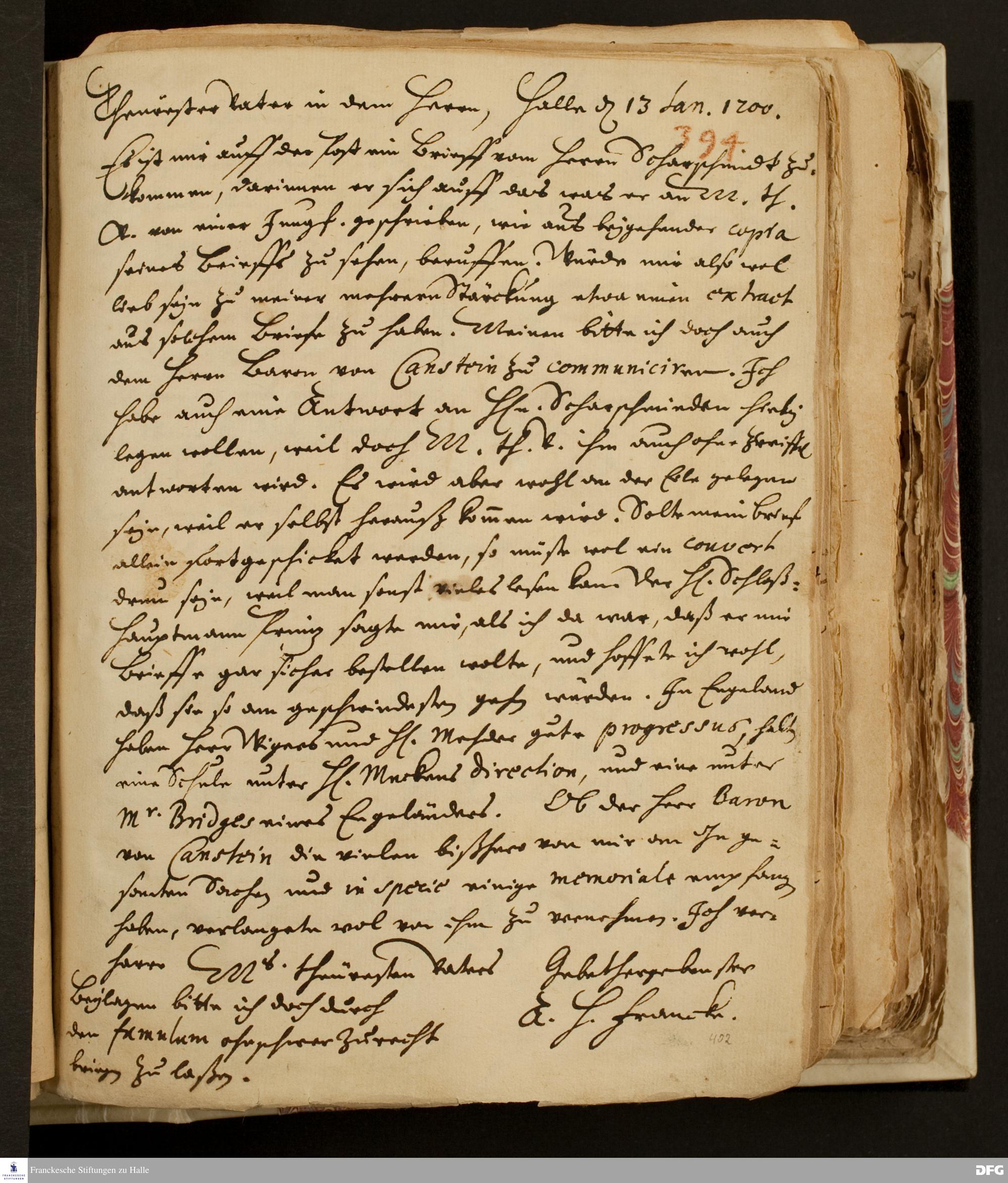 Brief von August Hermann Francke an Philipp Jakob Spener.