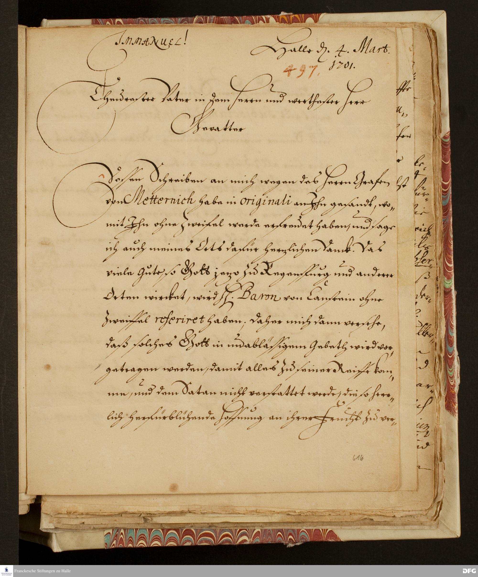 Brief von August Hermann Francke an Philipp Jakob Spener.