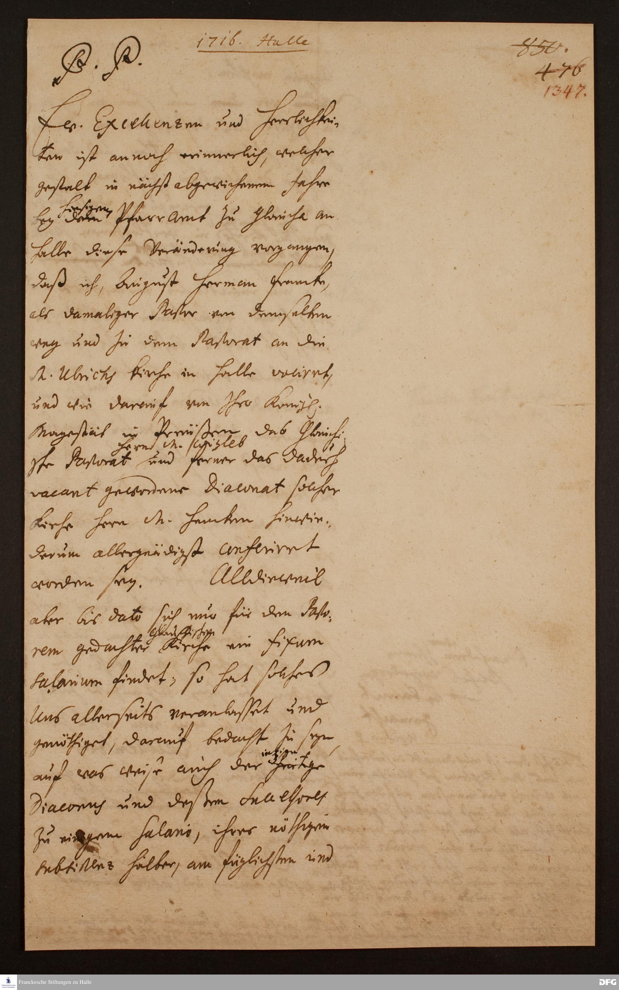 Brief von August Hermann Francke an [die Regierung und das Konsistorium des Herzogtums Magdeburg].