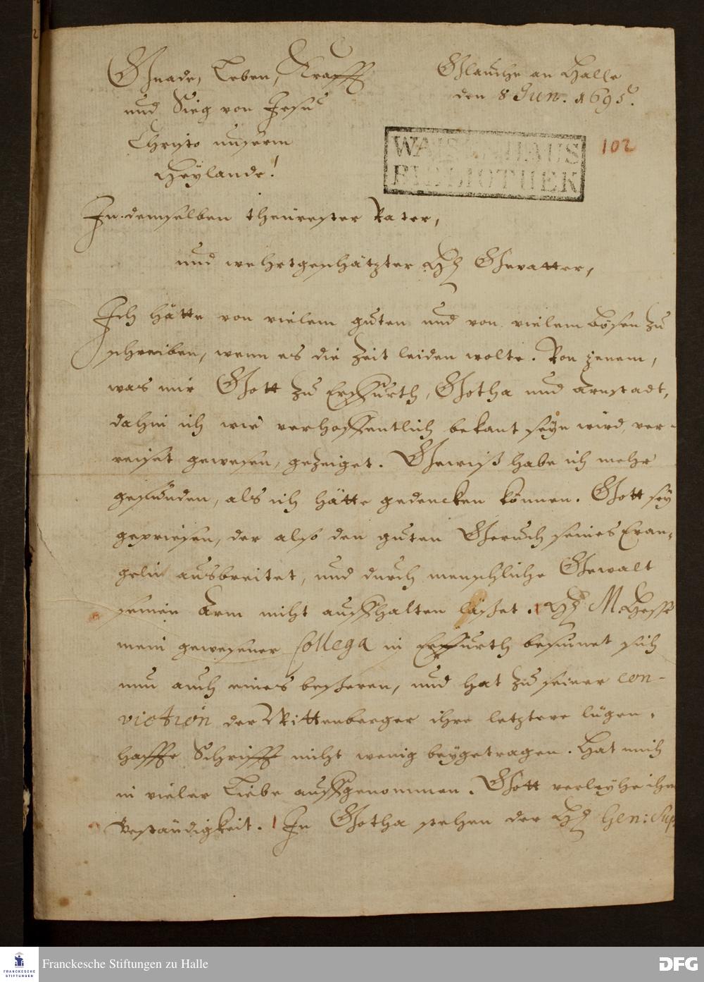 Brief von August Hermann Francke an Philipp Jakob Spener.