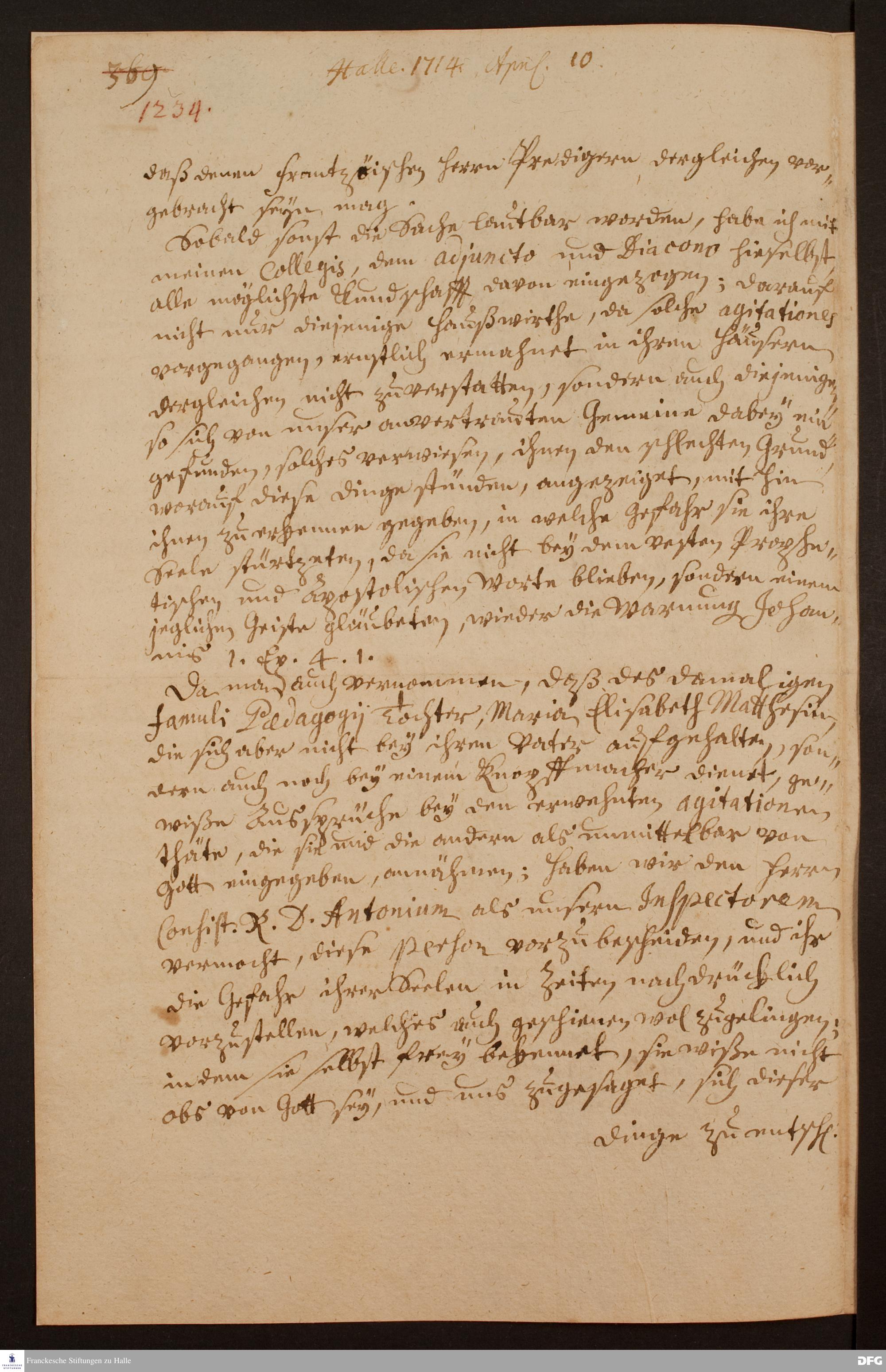 Brief von August Hermann Franckes an die Regierung und das Konsistorium des Herzogtums Magdeburg.